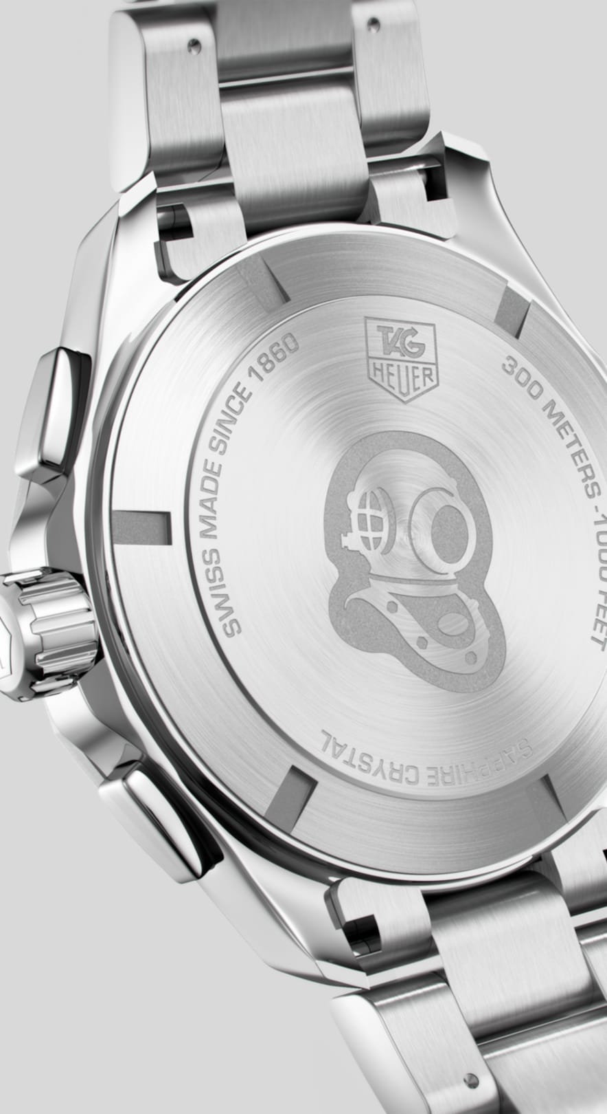 Quartz, 43 mm, Steel CAY111B.BA0927A 43mm quartz chronograph with full professional diving features. Heuer’s link to the high-pressure world of watersports began in 1895, the year it patented its first water-resistant case. The rugged, go-anywhere Aquaracer continues the legacy.