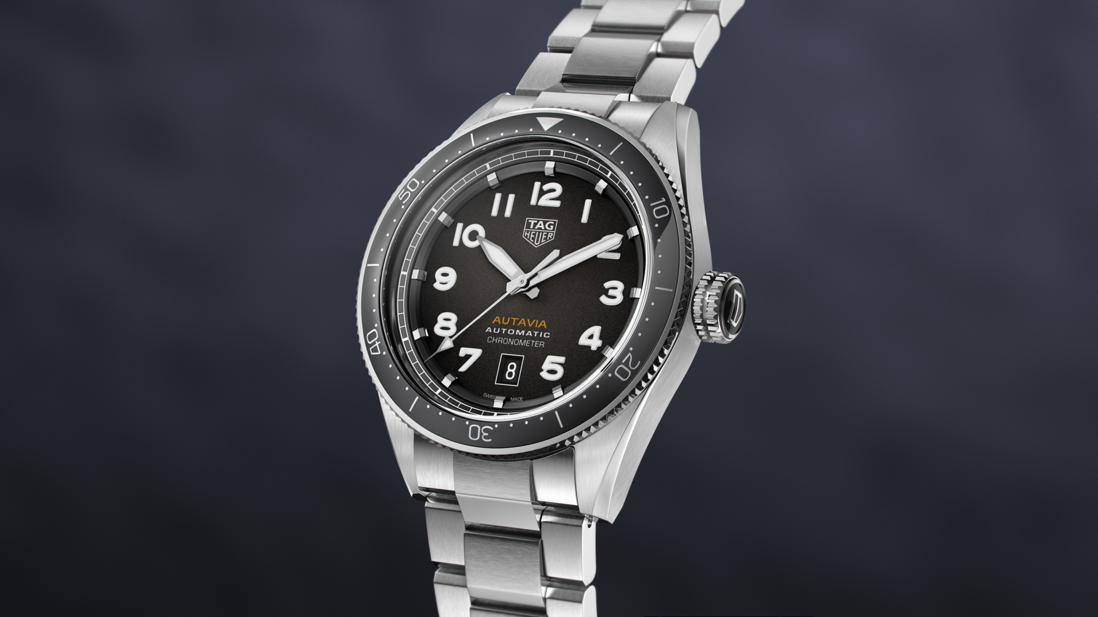 Ease of use and optimal legibility inform the Autavia dial and case design. The numerals and hands are coated with white Super-LumiNova®. The turning bezel is bidirectional.