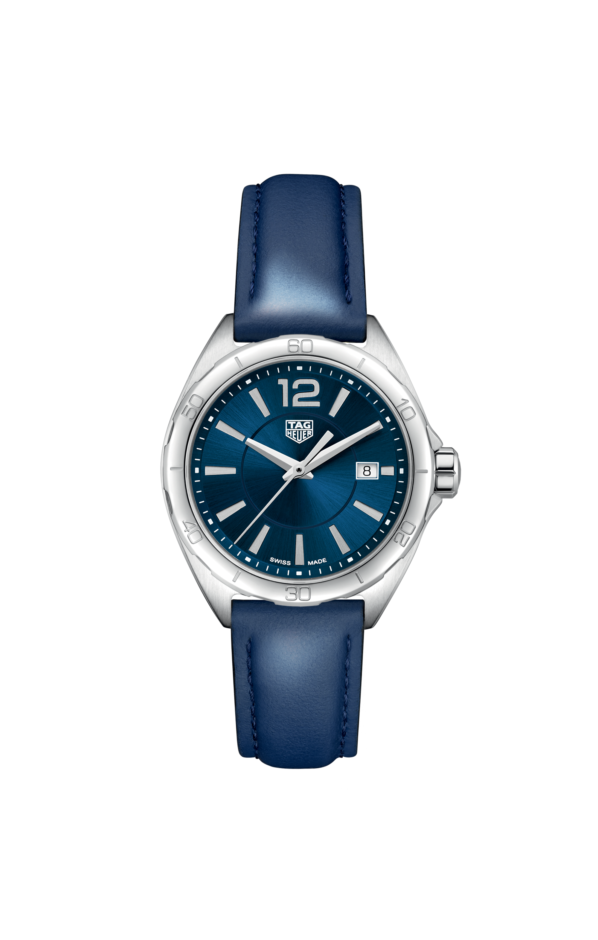A very feminine quartz watch with the classic TAG Heuer Formula 1 combination of brushed blue dial and silver-toned details in a hand-finished 32mm stainless-steel case. The matte blue calfskin strap is lined with ultra-soft beige calfskin. A sports watch at once casual and stylish, for woman on the move.
