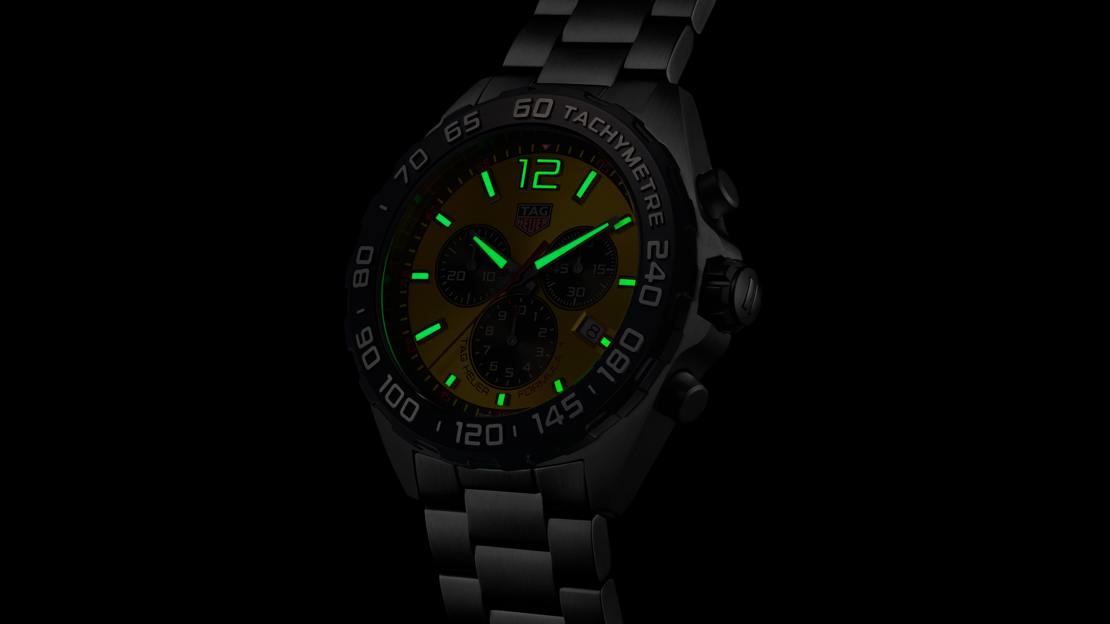 Quartz, 43 mm, Steel CAZ101AM.BA0842Resolutely inspired by the brisk energy of motor racing, this TAG Heuer Formula 1 associates a vibrant yellow sunray brushed dial with racing-ready chronograph counters and bold dial details. Designed for those who thrive on speed-driven adrenaline.
