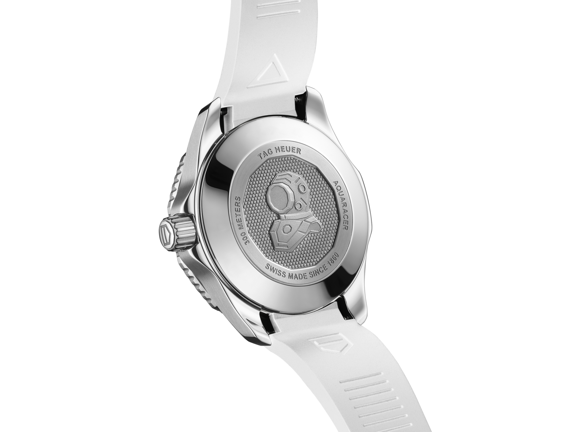 这款泰格豪雅竞潜系列腕表,以36毫米表壳搭配出众瞩目的粉色表盘,令这款纯正的潜水腕表更显惊艳动人。表款饰有波浪图案,搭配闪亮耐用的白色橡胶表带,具备抗压专业性能,无惧严苛条件。