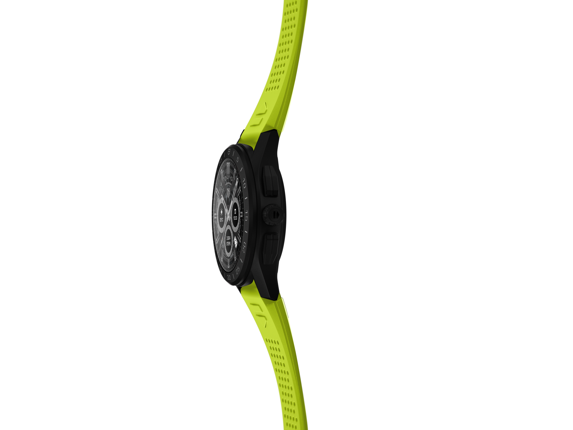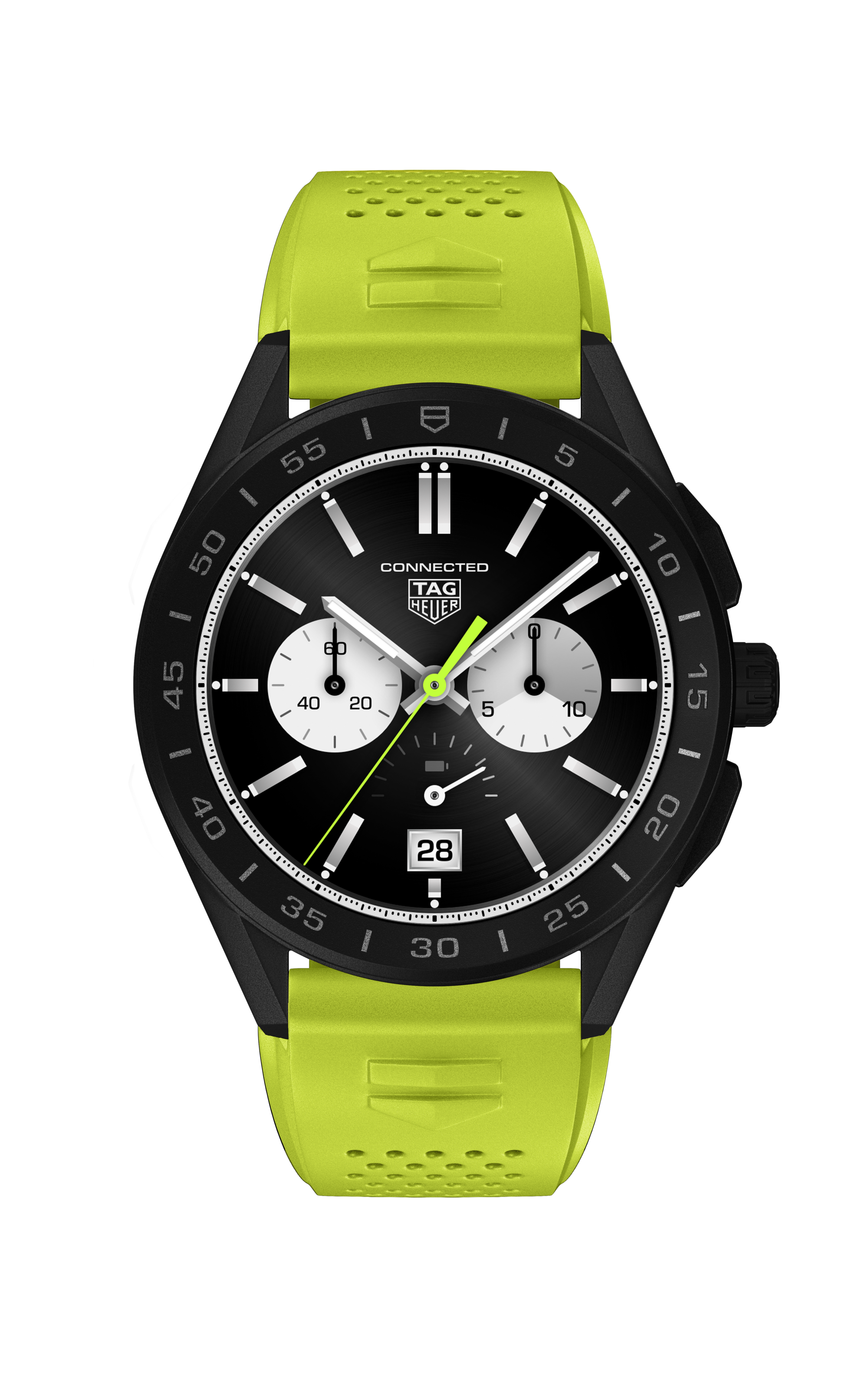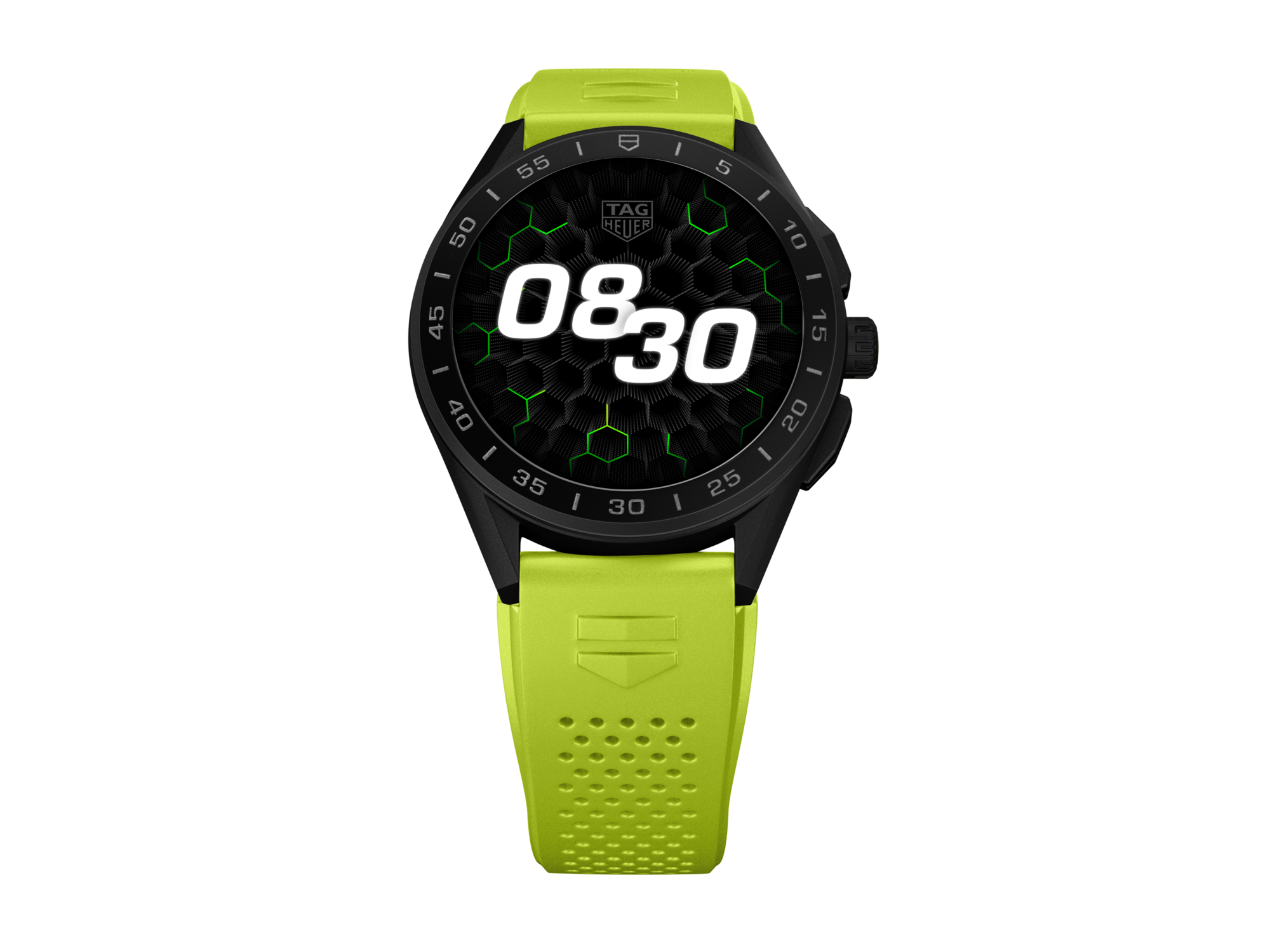 这款45毫米腕表凭借其别具一格的美学设计,一举成为出众瞩目的实力新秀:石灰绿色橡胶表带采用鲜艳明快的色彩设计,配备快速更换系统,实为TAG Heuer Connected智能腕表的理想伴侣。
