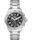 El refinado brazalete de acero de tres hileras, extremadamente resistente, presenta un cierre desplegable con pulsadores de doble seguridad y un práctico eslabón de extensión.
