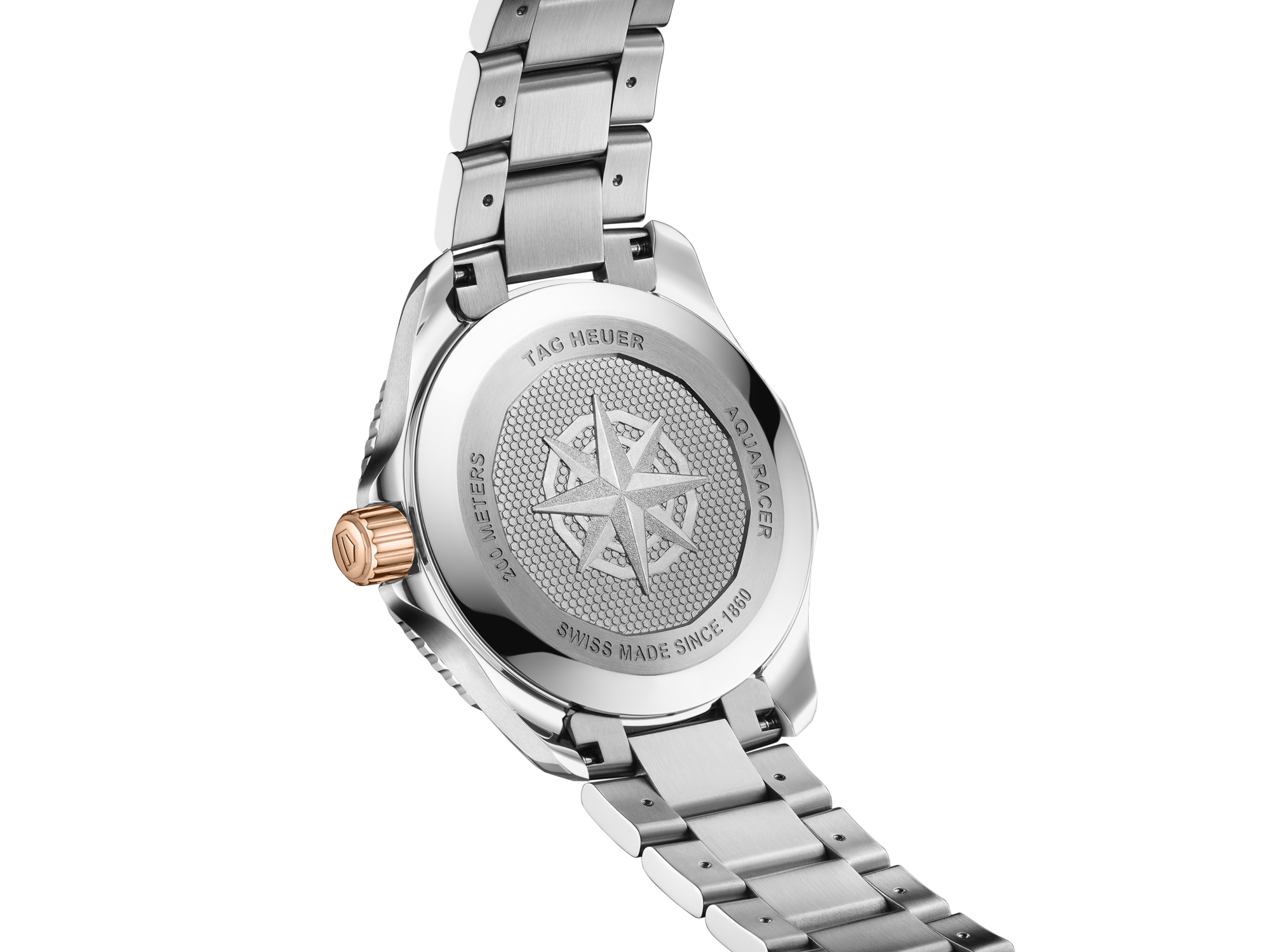 Encased in resilient steel, the unidirectional steel bezel and crown, both plated with 18K 5N rose gold, add a distinctive touch to this tool watch. Water-resistant up to 200 meters, it's as reliable as it is stylish — ready for any outdoor challenge.
