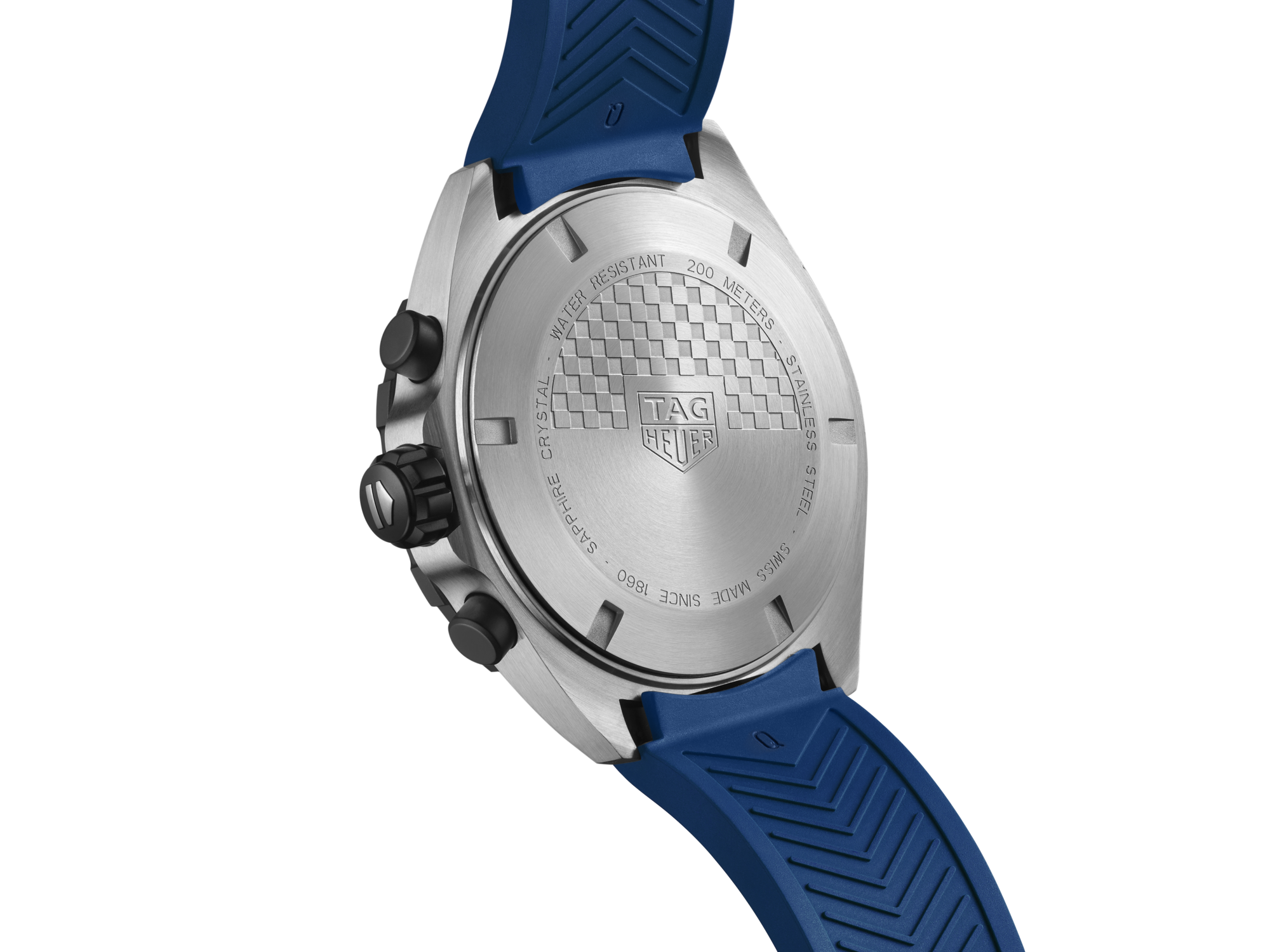 Immerse yourself in the captivating blue dial, adorned with three azure subdials, each featuring a hand tipped in red for the extra rush of energy.