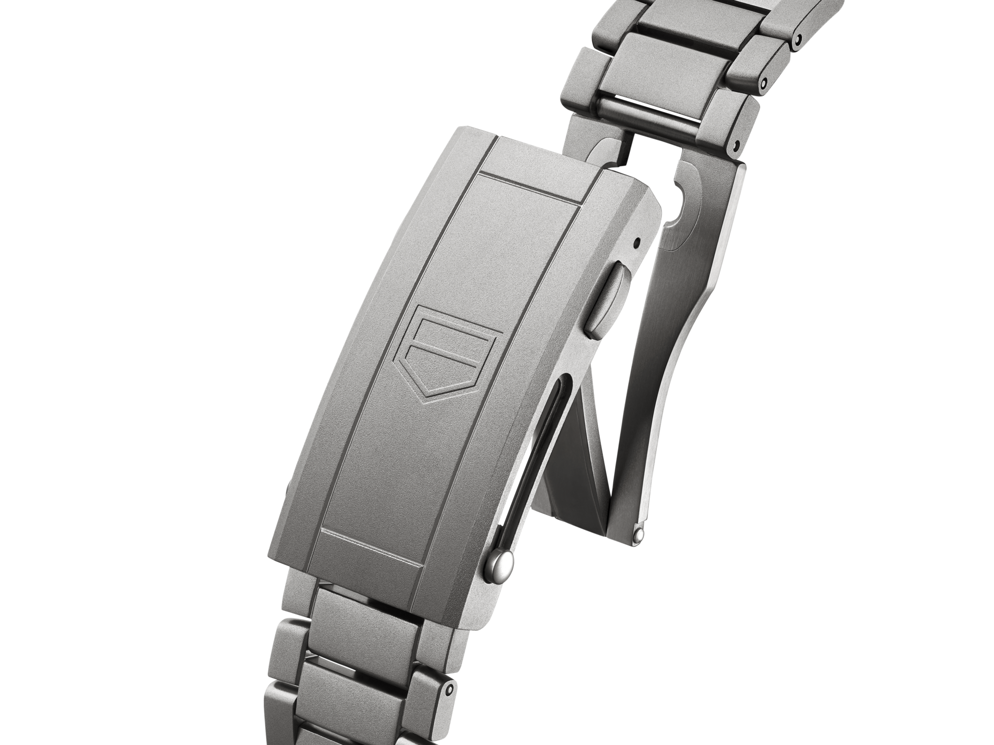 喷砂2级钛金属表链搭配可延展链节,深海探索时可稳固佩戴于潜水服之外,日常佩戴亦舒适出众。其坚固的折叠表扣搭配双安全按钮,在任何条件下都能提供稳妥保护。