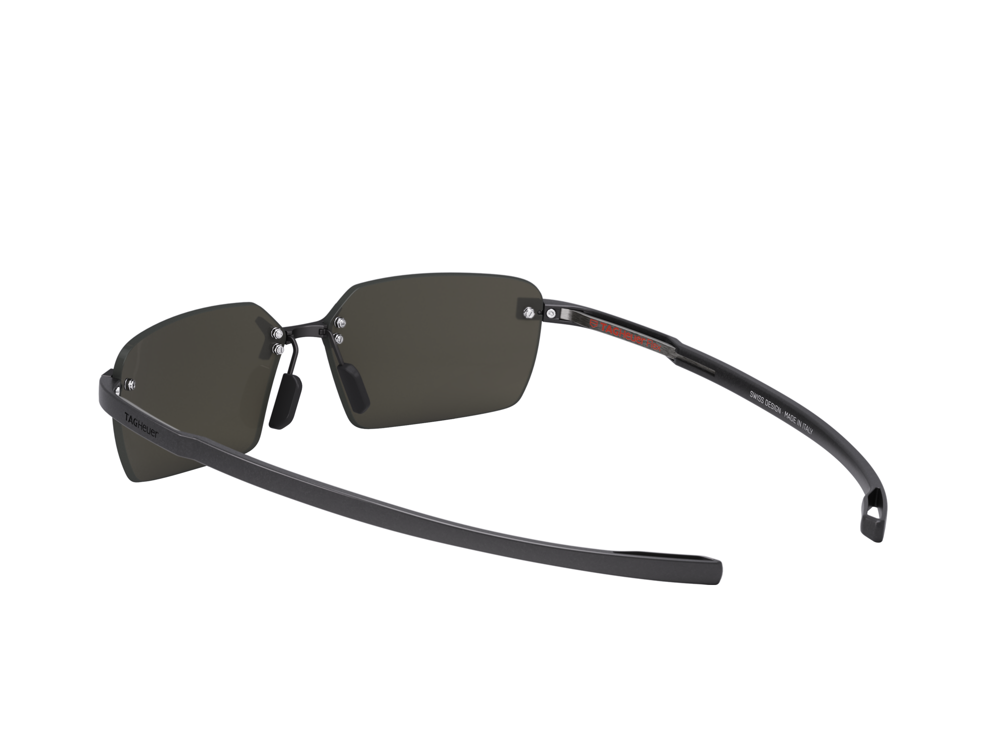 TAG Heuer FLEX太陽眼鏡完美融合時尚與創新,採用無框設計,配以啞光黑色鈦合金中樑和長版碳纖維鏡腳。精緻的生質尼龍鏡片提供3級防護,是都市冒險的完美之選。