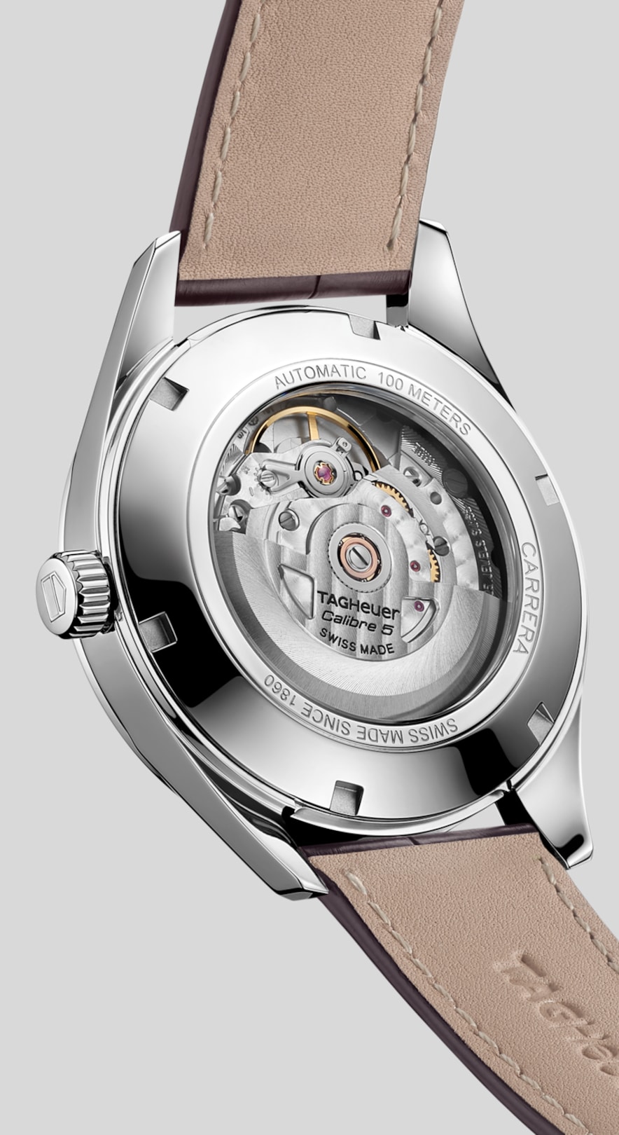 Automatic, 39 mm, Steel WAR211B.FC6181An elegant three-hand watch with white dial, classic TAG Heuer Carrera lugs and a brown alligator strap. Inside the 39mm steel case beats the robust Calibre 5 automatic movement.