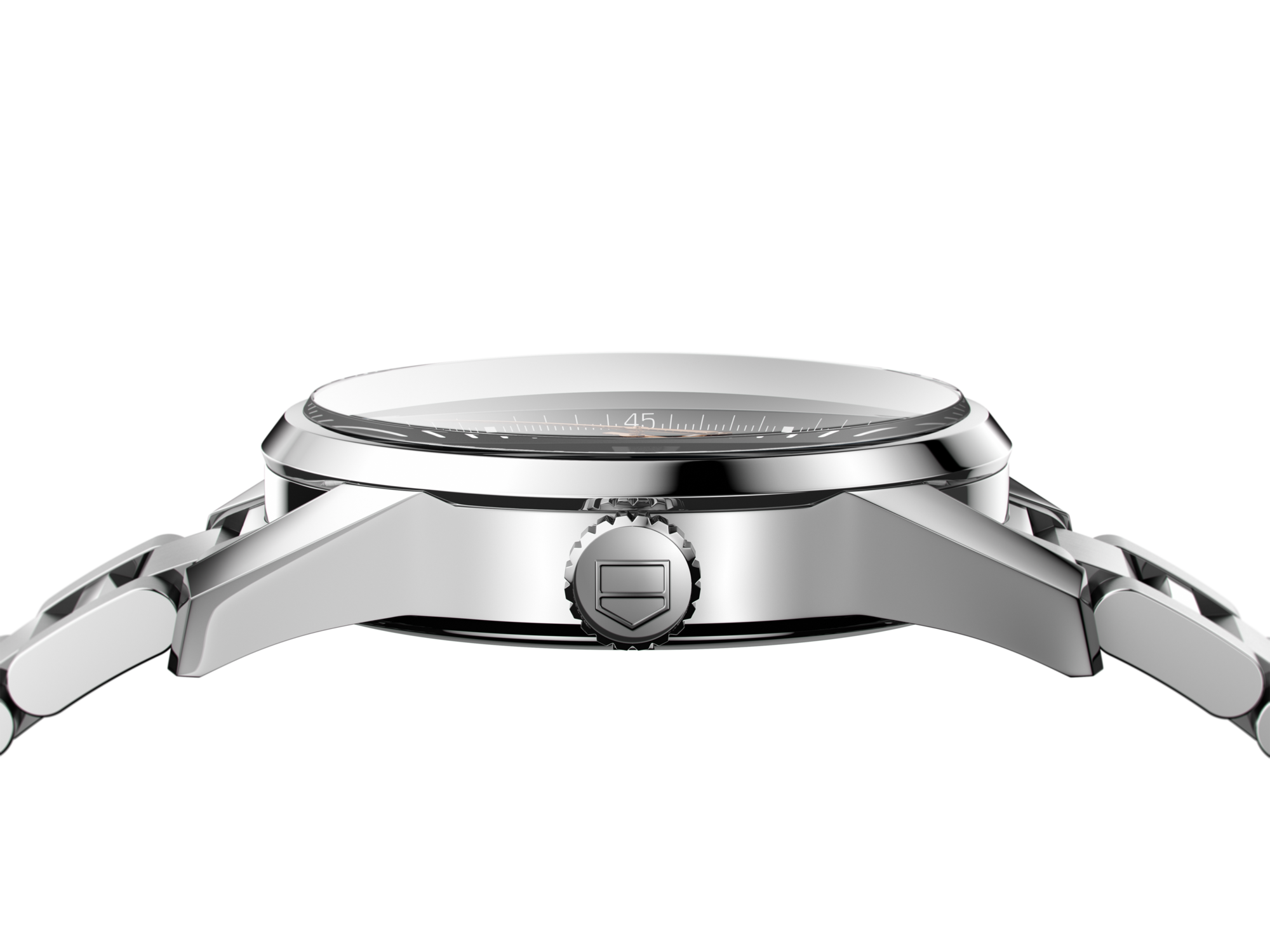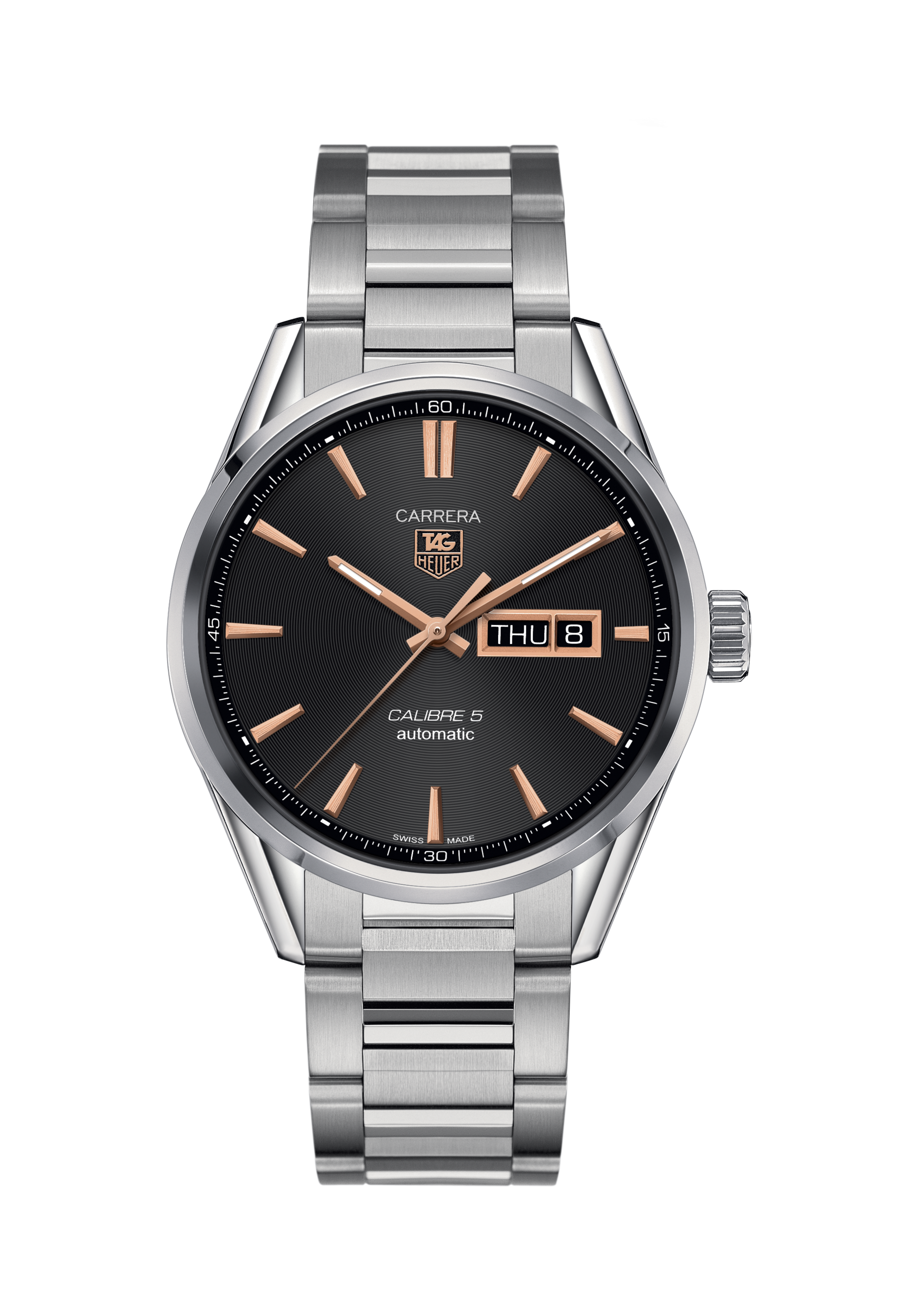 The TAG Heuer Carrera is renowned for its uncluttered, easy-to-read design. The hour and minute hands displayed Super-LumiNova for enhanced legibility in the dark. o'clock is polished steel.