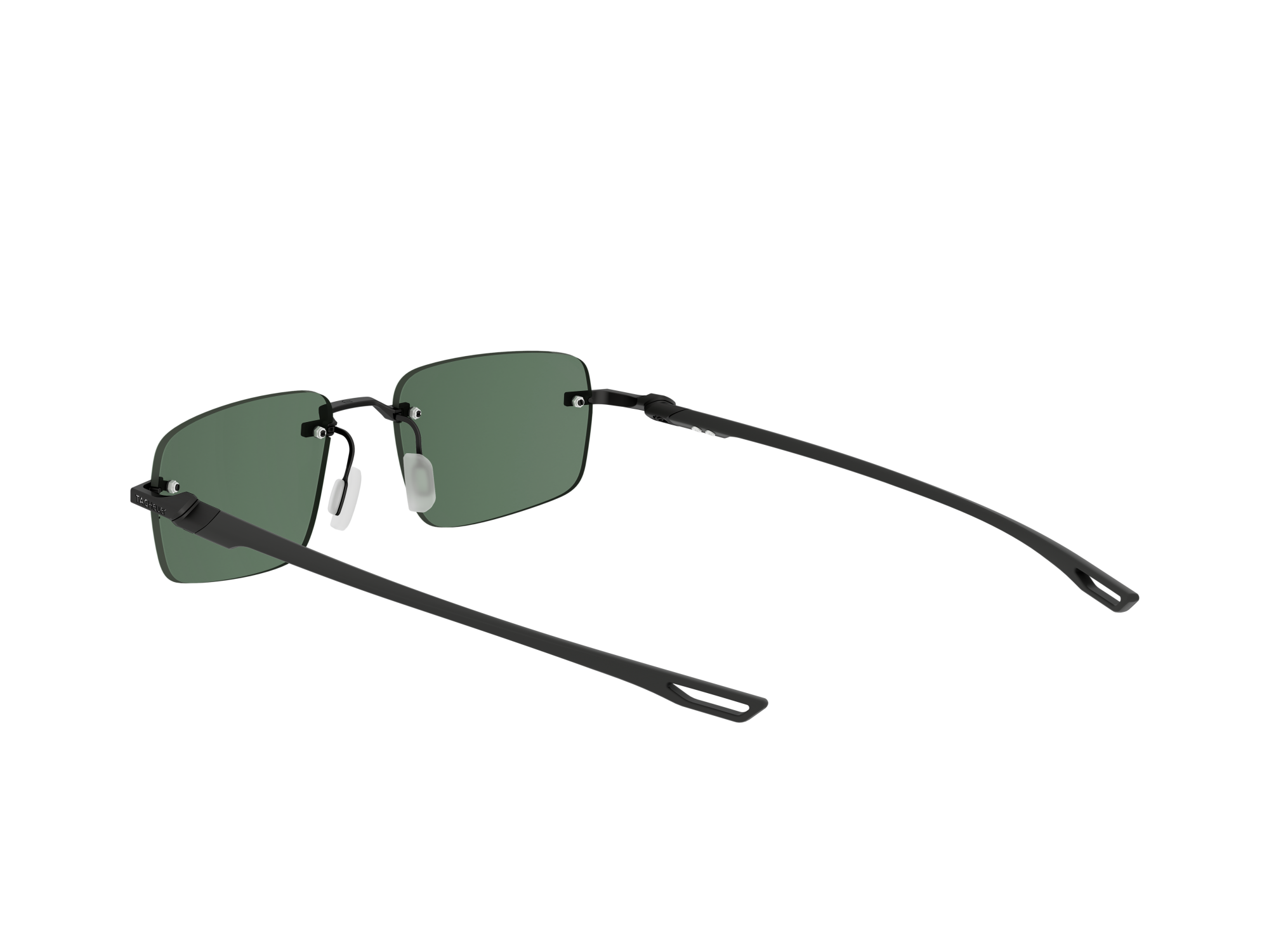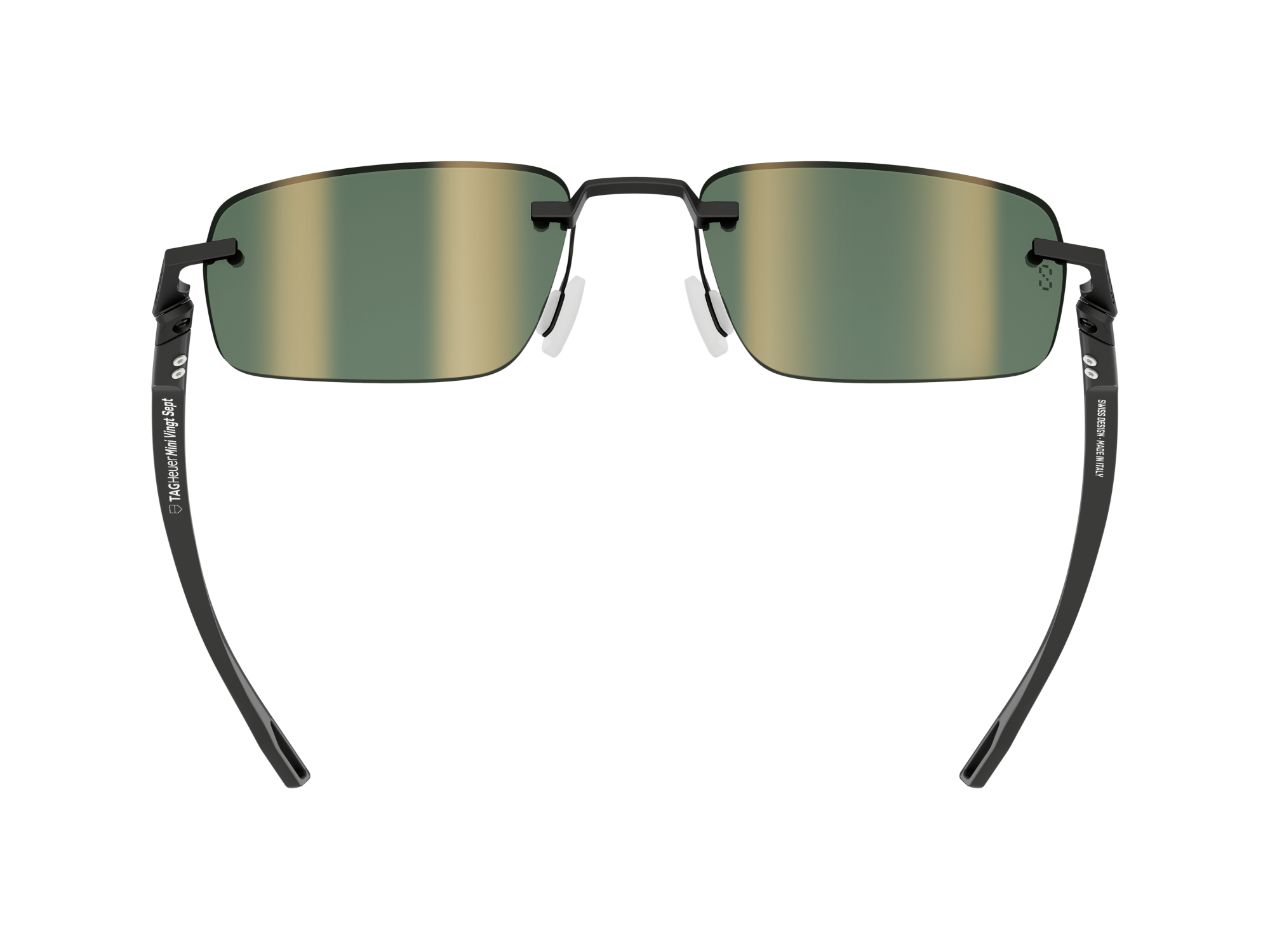 The solid green lenses, enhanced with a bronze flash, feature TAG Heuer’s Specta technology, an innovation that reduces glare while maintaining crisp, high-contrast vision. These bio-nylon category 3 lenses with a Base 4 design, treated with oleophobic material to resist smudges and watermarks, offer exceptional clarity and UV protection.