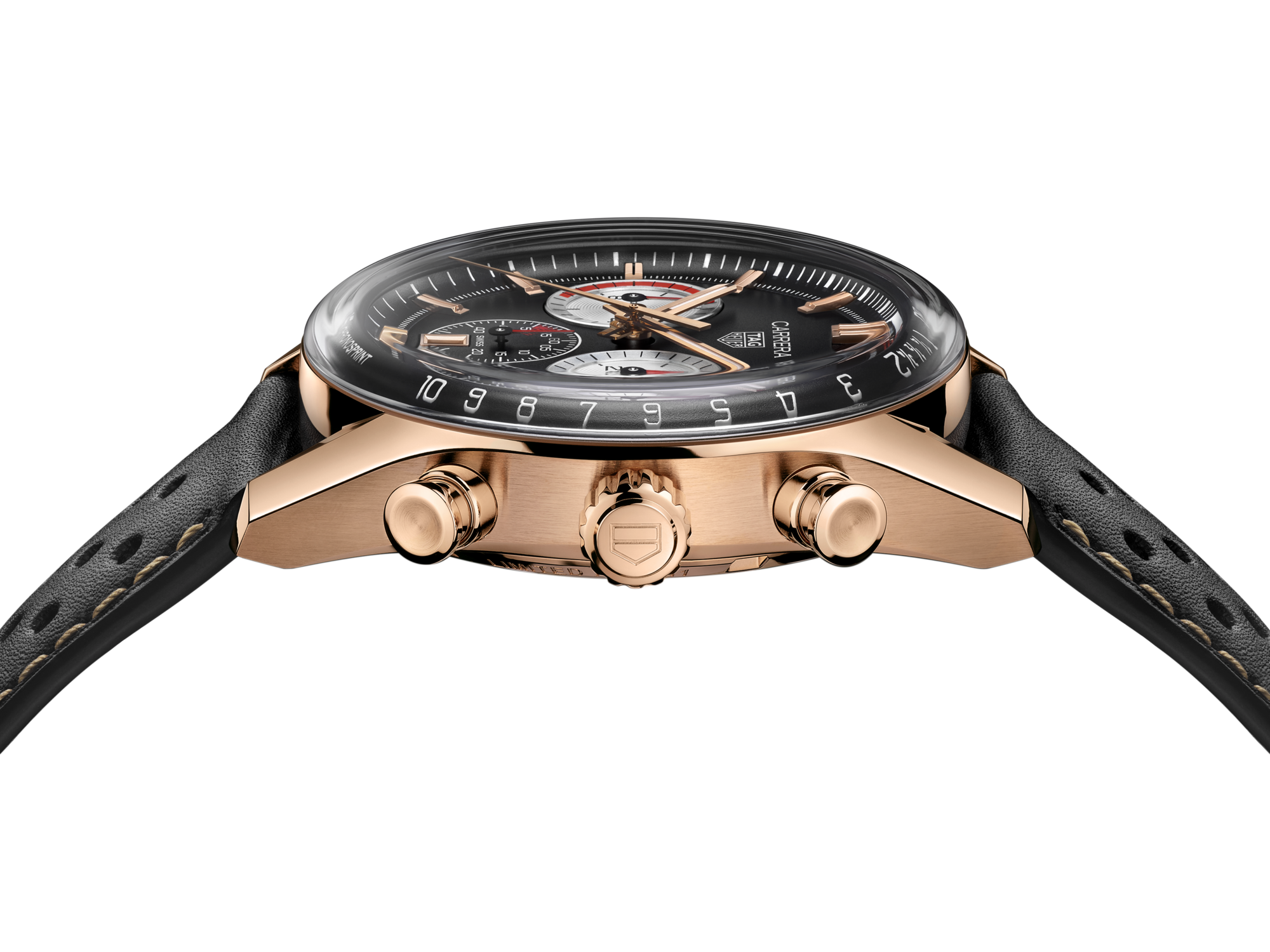The 42 mm case, crown, and pushers are crafted in fine-brushed and polished 18K 5N solid rose gold—a nod to the golden Porsche lettering of the first 911 models. Beneath the domed sapphire crystal lies the in-house Calibre TH20-08, a groundbreaking chronograph movement with a Chronosprint complication, an 80-hour power reserve, and a custom Porsche steering wheel rotor. The caseback bears the engraving “LIMITED XX/64” alongside the Victory Wreath, echoing Jack Heuer’s tradition of gifting Carreras to victorious drivers.