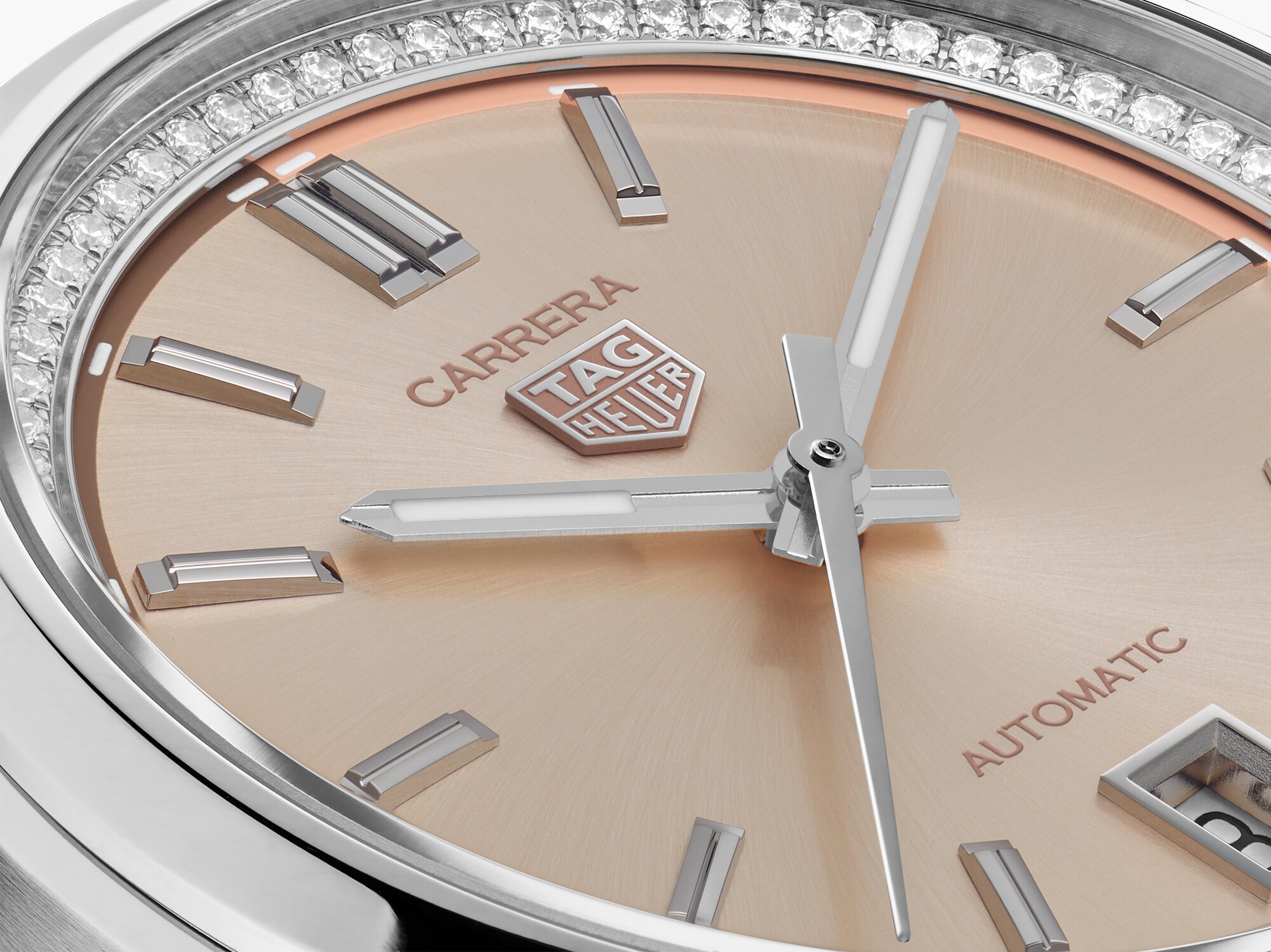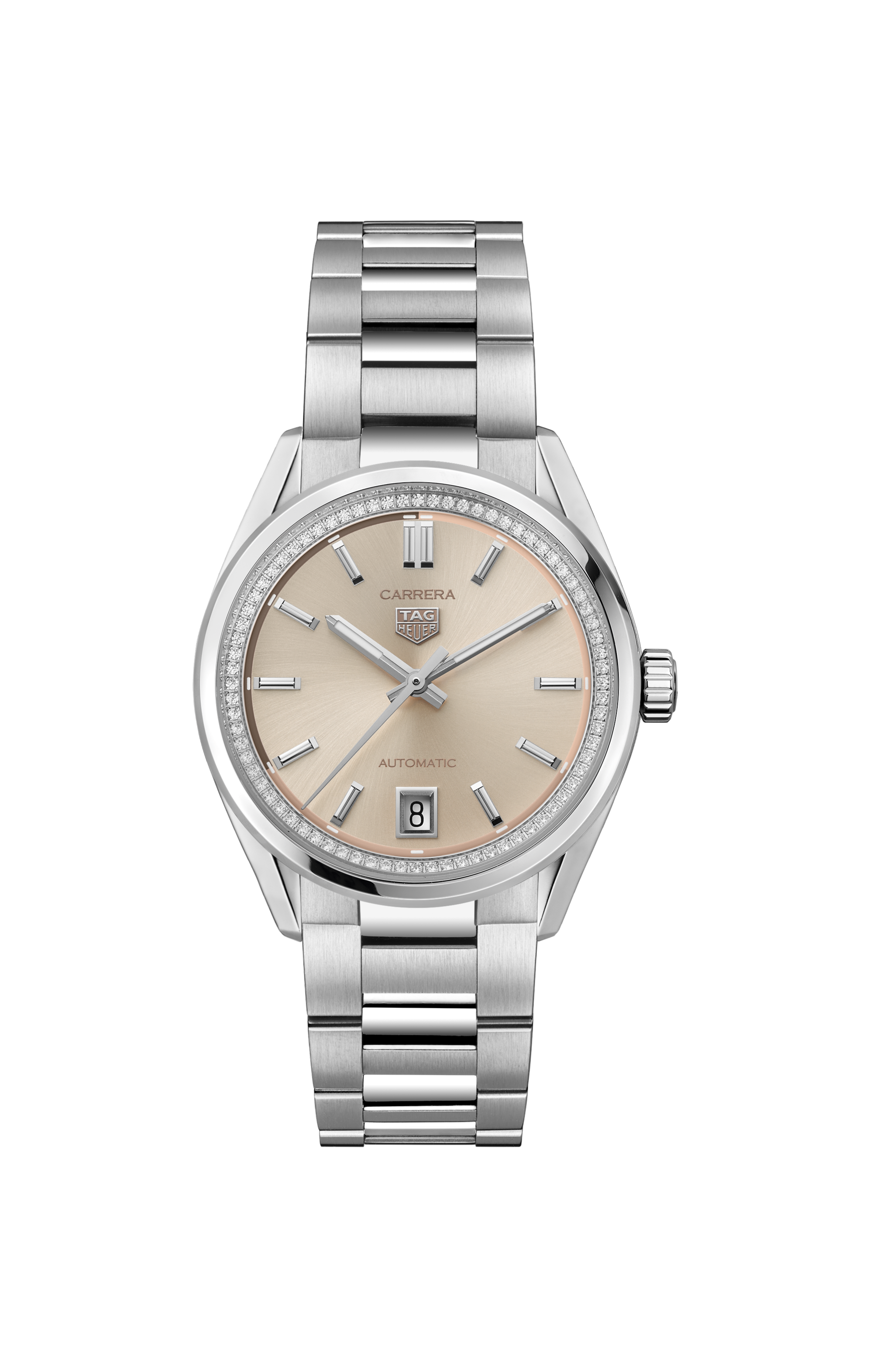 Automatic, 36 mm, Steel WBN231A.BA0001With its subtle powdery pink-coloured dial circled by a stunning flange set with shimmering diamonds (0.288ct.), this 36mm TAG Heuer Carrera distils its unique vision of classic urban elegance. A signature piece crafted for an ambitious and driven lifestyle.
