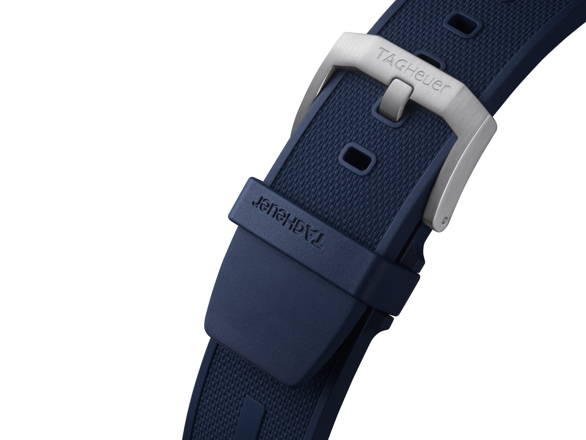 Fitted with a textured blue rubber strap, with TAG Heuer engraved pin buckle, this energetic challenger looks the part.