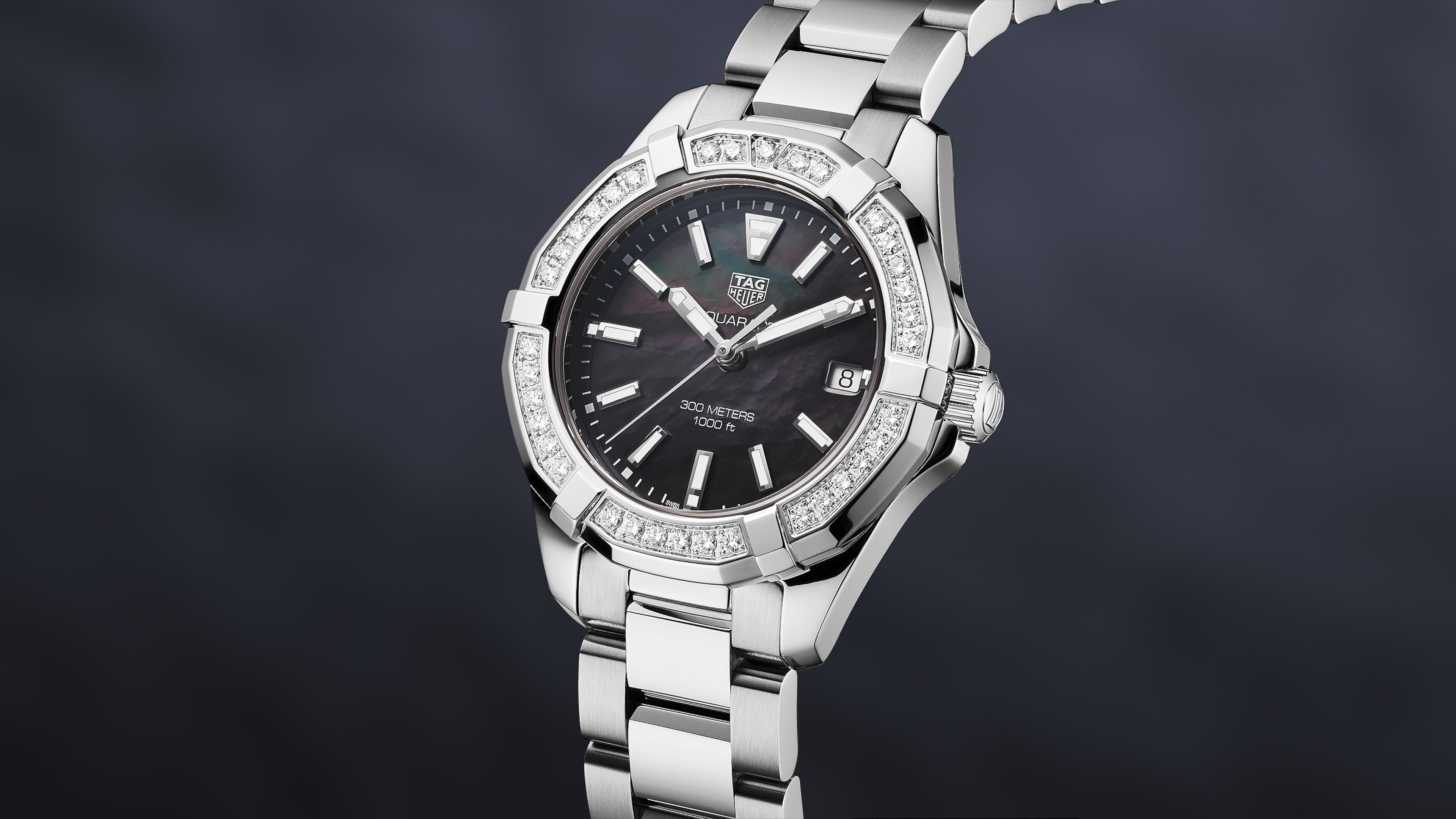Quartz, 35 mm, Steel WAY131P.BA0748The gleaming strength of stainless steel allied with the feminine allure of diamonds. An even more elegant dial thanks to black mother-of-pearl. For the unidirectional turning bezel, 35 diamonds.