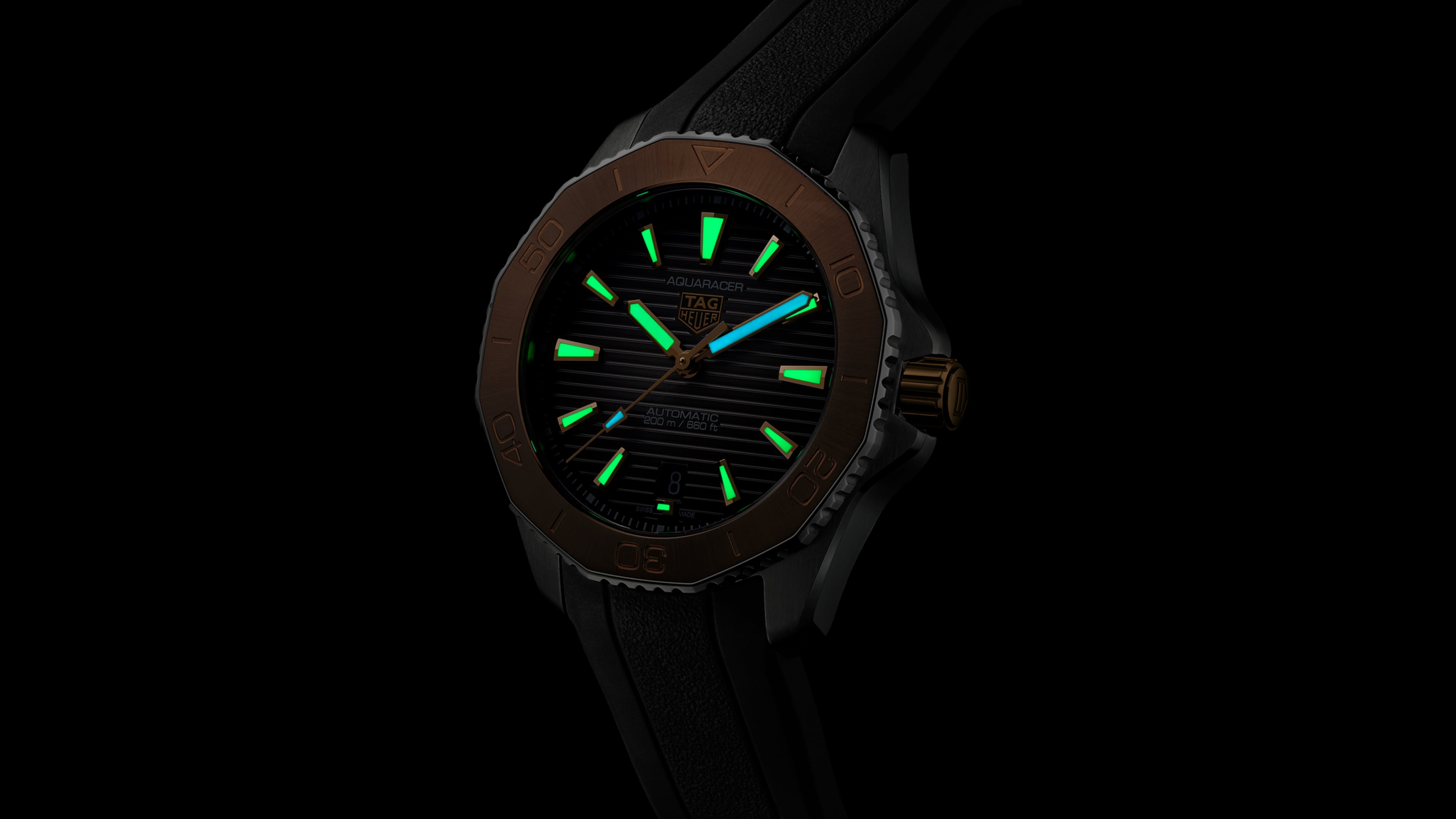 Automatic, 40 mm, Steel WBP2151.FT6199Luxury meets ultra-resistance in this showy TAG Heuer Aquaracer. The 18K 5N rose-gold bezel inlay and screw-down crown stand out next to the smoky-black dial adorned with highly legible hands and markers. A watch geared for every achievement.