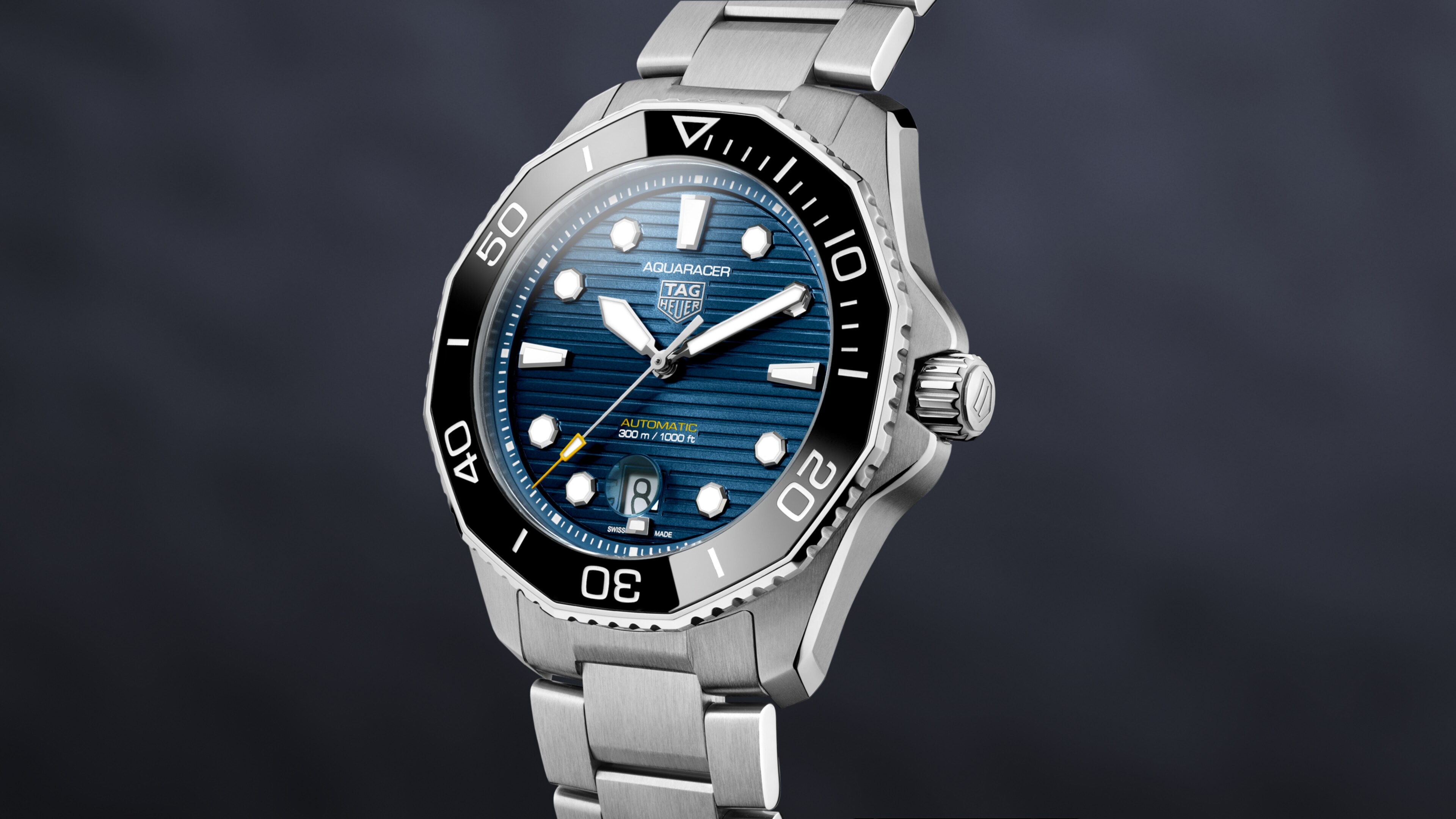 Automatic, 43 mm, Steel WBP201E.BA0632Built for diving, the new TAG Heuer Aquaracer with a blue sunray brushed dial is the ultimate everyday watch. Updated with a new case and bracelet and powered by the automatic Calibre 5, the Aquaracer raises the bar for performance.