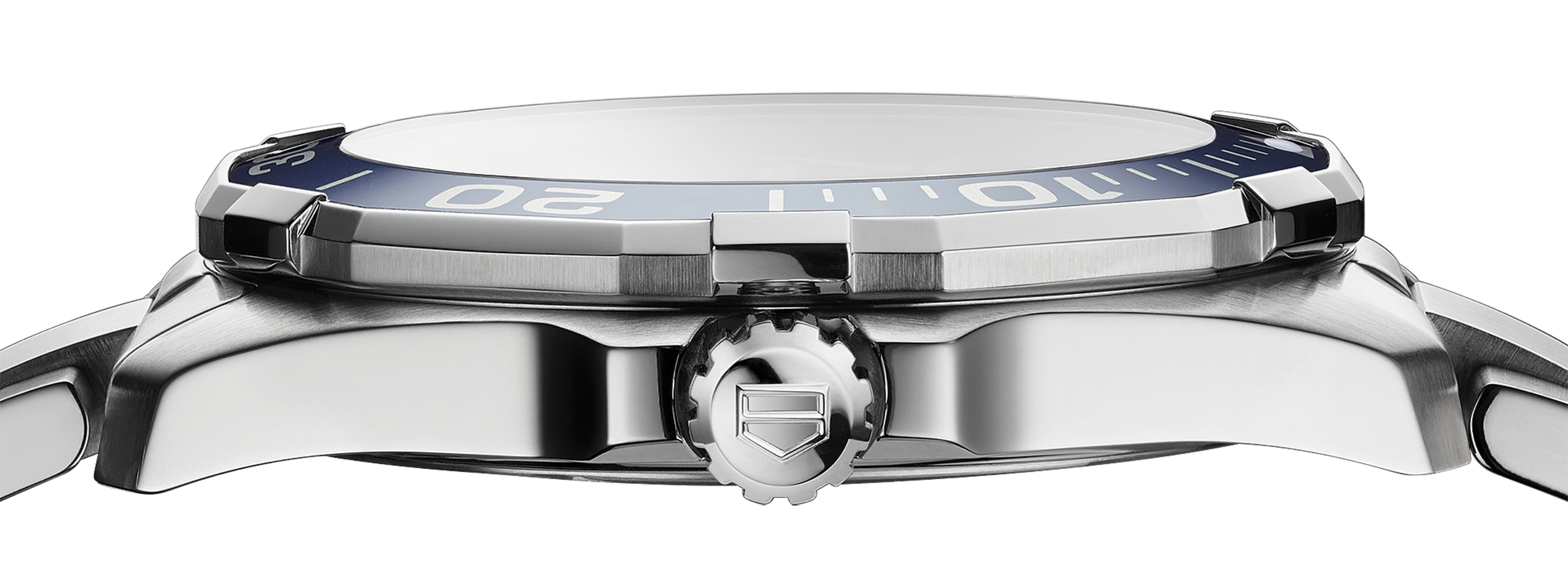 Quartz, 43 mm, Steel WAY101C.BA0746An extremely robust professional dive watch with a 43mm steel case and a Swiss-Made quartz movement. The eye-catching blue of the dial and 60-minute scale unidirectional turning bezel and flange is an Aquaracer signature, as is the orange on the central hand. Water resistance: 300 meters.
