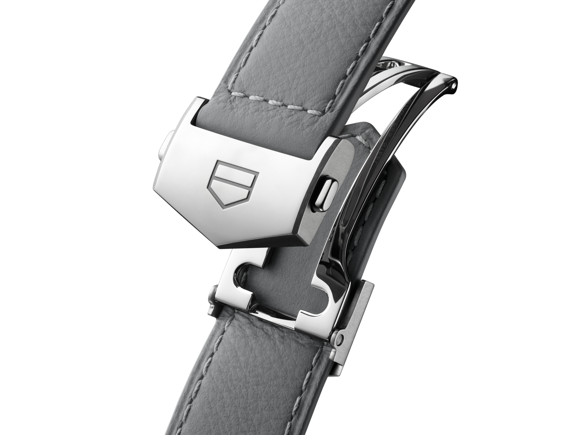 The grey calfskin leather strap enhances the watch’s sleek, modern appeal. Designed for comfort and versatility, it is secured with a steel folding clasp featuring double safety push-buttons, making it a refined companion for any occasion.