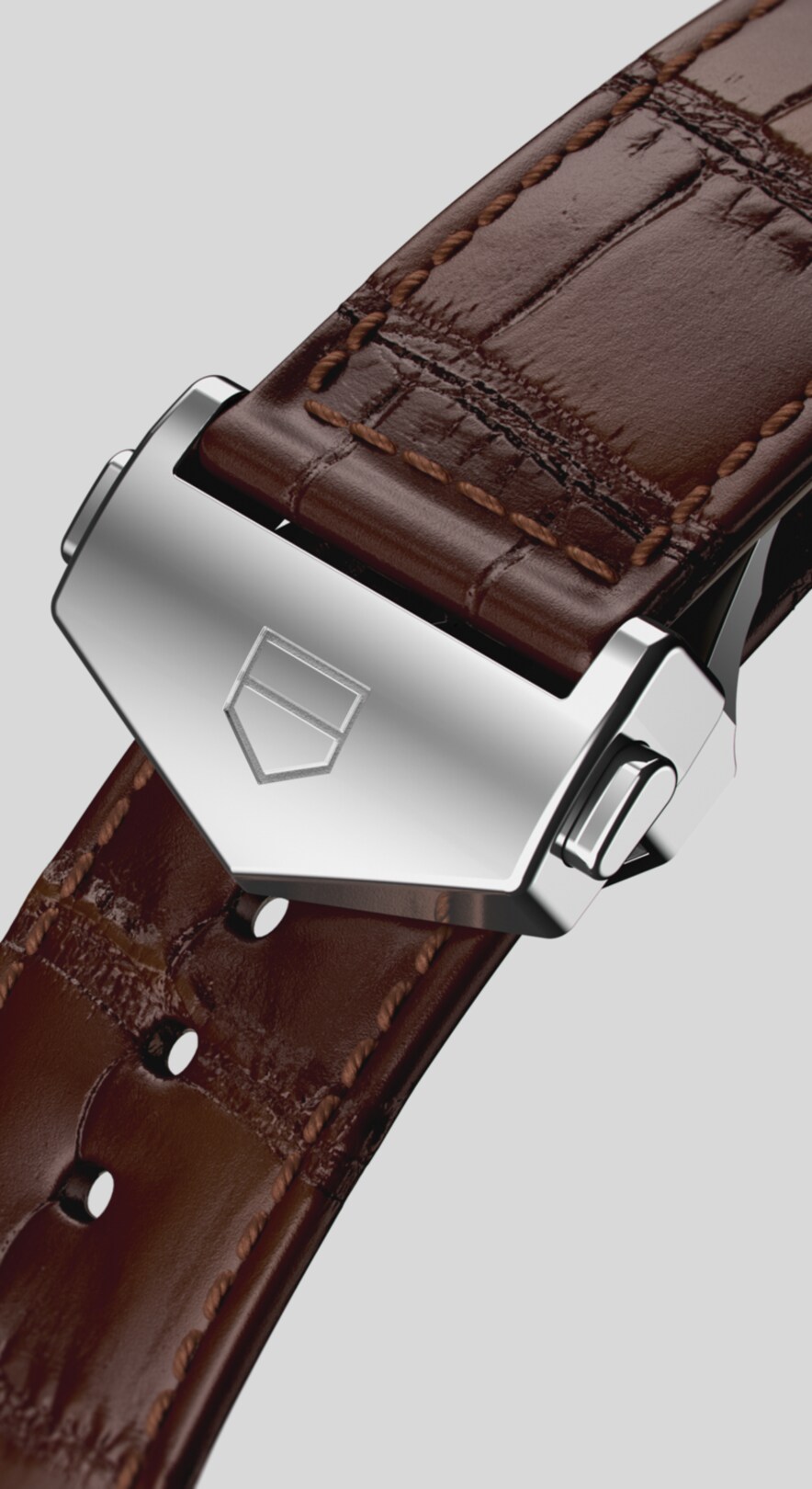 Automatic, 41 mm, Steel WAR201D.FC6291The white dial and brown alligator strap give this automatic watch with Day-Date dial the look of a true classic. Rose-gold plated (5N) hands and indexes add luxury luster.