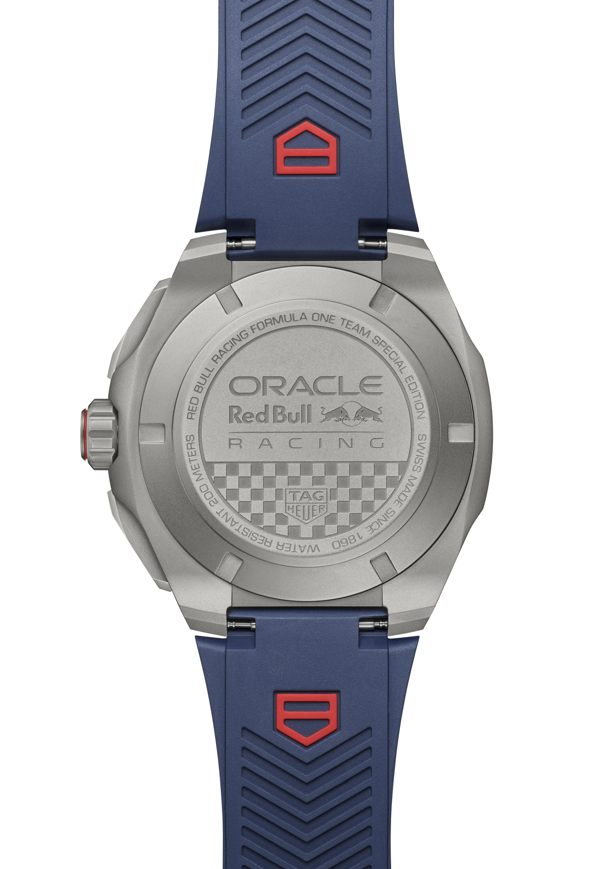 Equipped with an automatic movement, the chronograph ensures accuracy and endurance. The custom Oracle Red Bull Racing caseback engraving completes this remarkable timepiece.