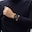 With a rubber base for comfortable wear, the black carbon finishing leather strap evokes the iconic design of the Porsche Taycan.