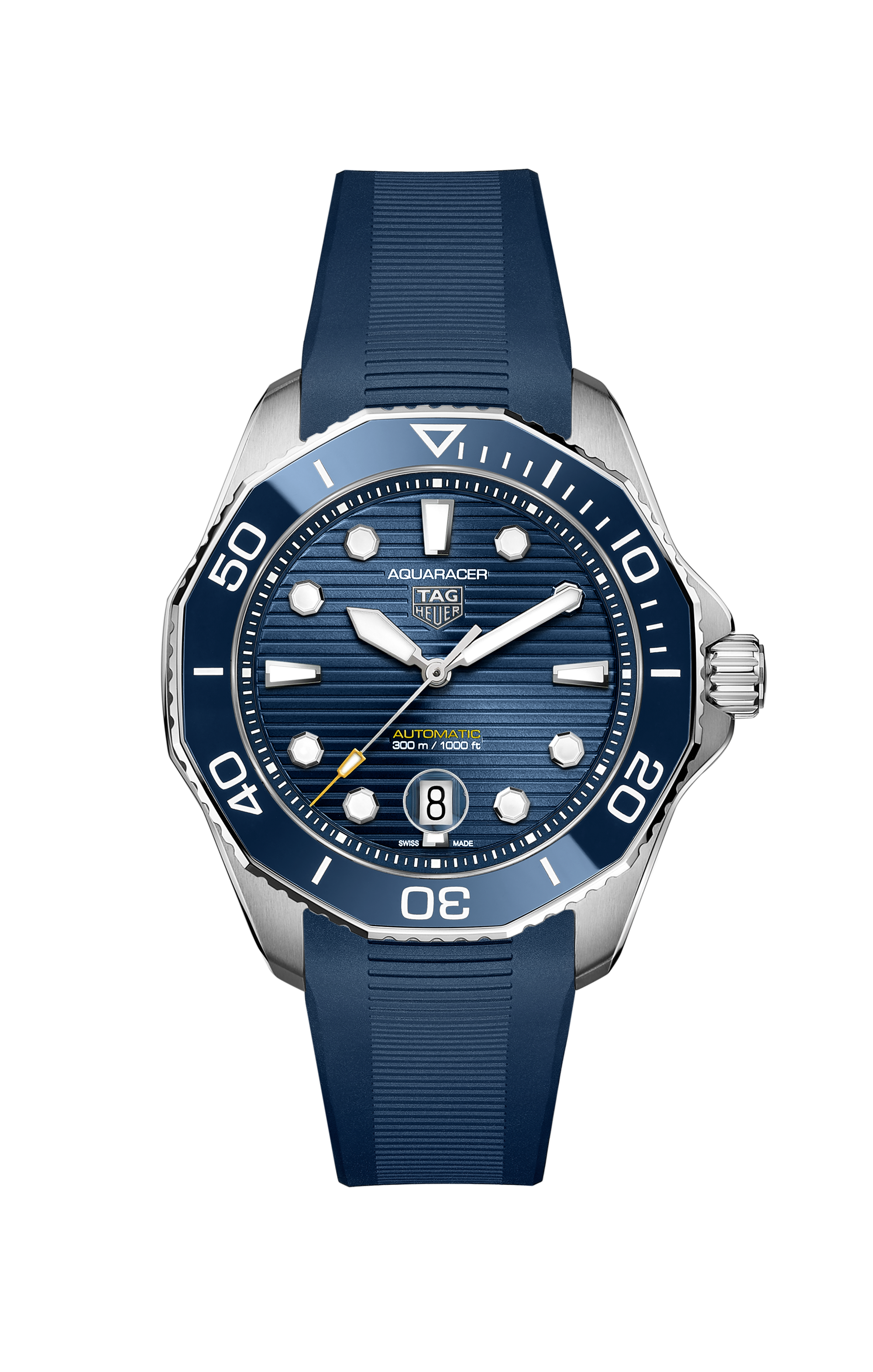A deep-sea diving companion. Driven by the automatic Calibre 5, the new TAG Heuer Aquaracer is engineered for performance. The vibrant blue sunray dial perfectly matches the blue rubber strap, with fine adjustment offering extreme comfort.