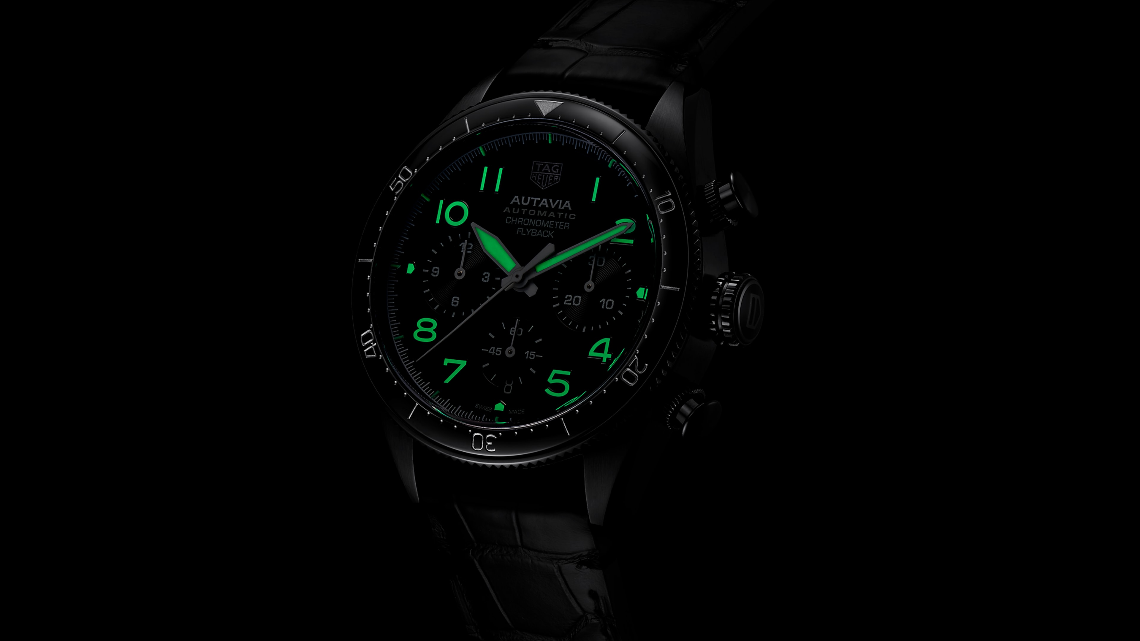 The 42mm black DLC polished, fine brushed case echoes the classic Autavia heritage. Water resistance to 100 meters thanks to a screw-in crown. Crafted for heroic adventure-seekers.