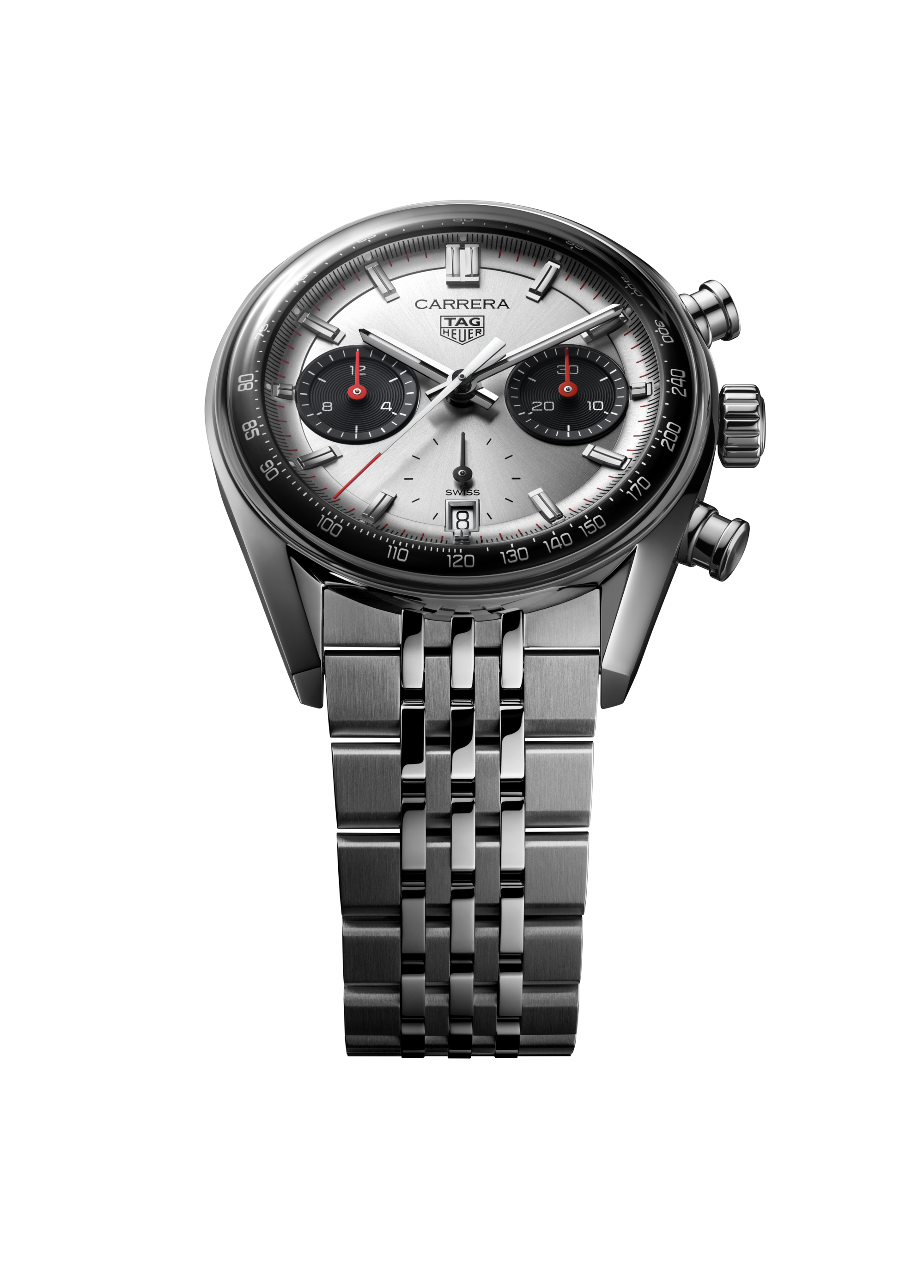 The revived Heuer seven-row beads-of-rice steel bracelet, paired for the first time on a TAG Heuer Carrera 39mm glassbox model, offers a seamless blend of versatility and timeless style.