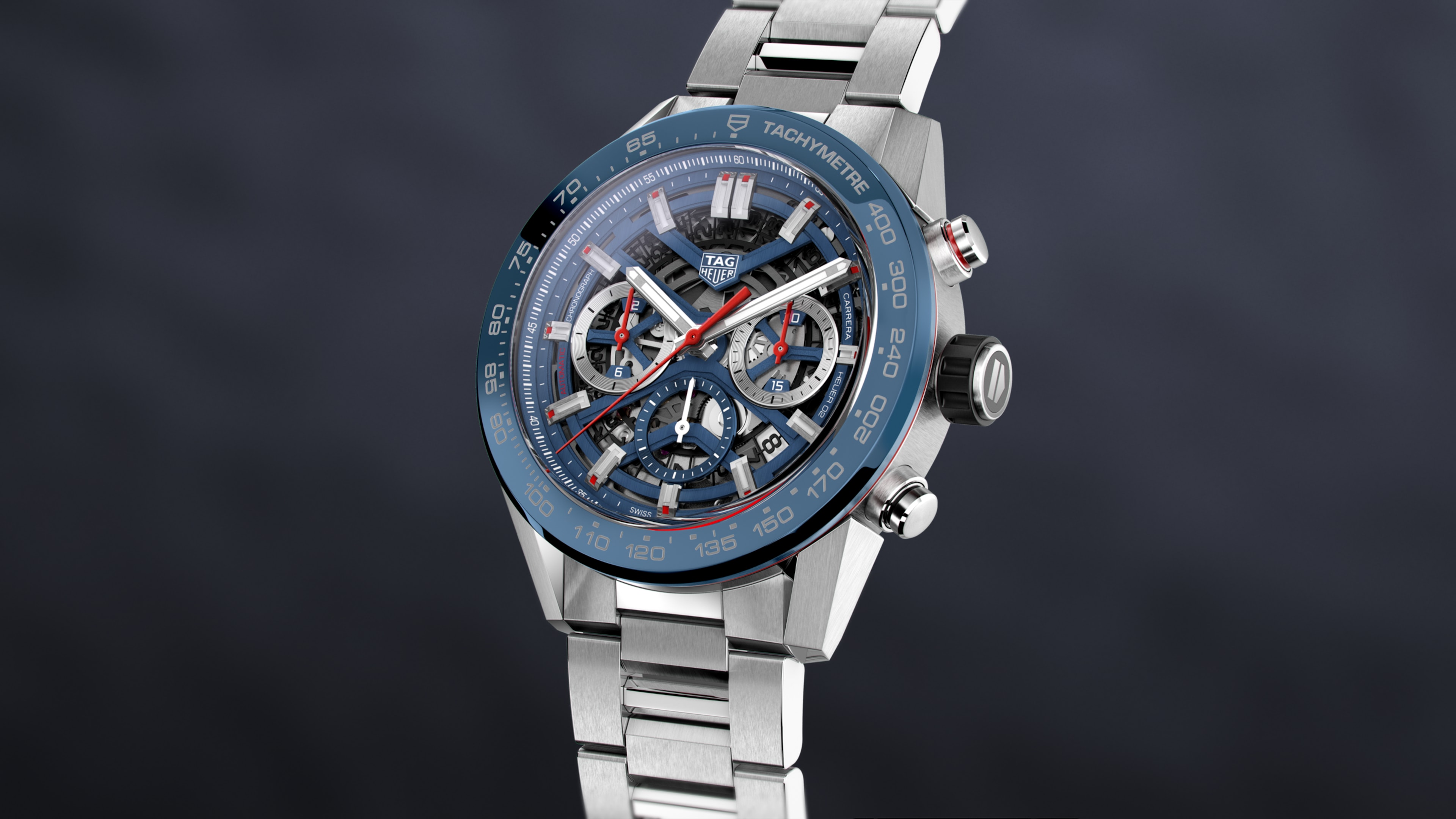 Automatic, 45 mm, Steel CBG2A11.BA0654An assertive, 45mm TAG Heuer Carrera in stainless-steel with blue dial and fixed blue ceramic bezel. The expansive face shows off the intricately skeletonized dial, technical art of work for this in house manufacture movement.