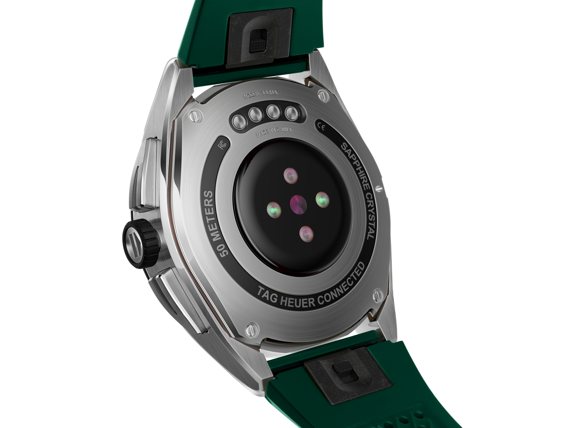 45 mm, Steel SBR8A14.BT6317The essence of traditional watchmaking is reinvented with a modern twist in this sporty 45mm TAG Heuer Connected Calibre E4 watch. Adorned in a striking green hue, it boasts a fusion of contemporary design and advanced technology. Gear up and go.