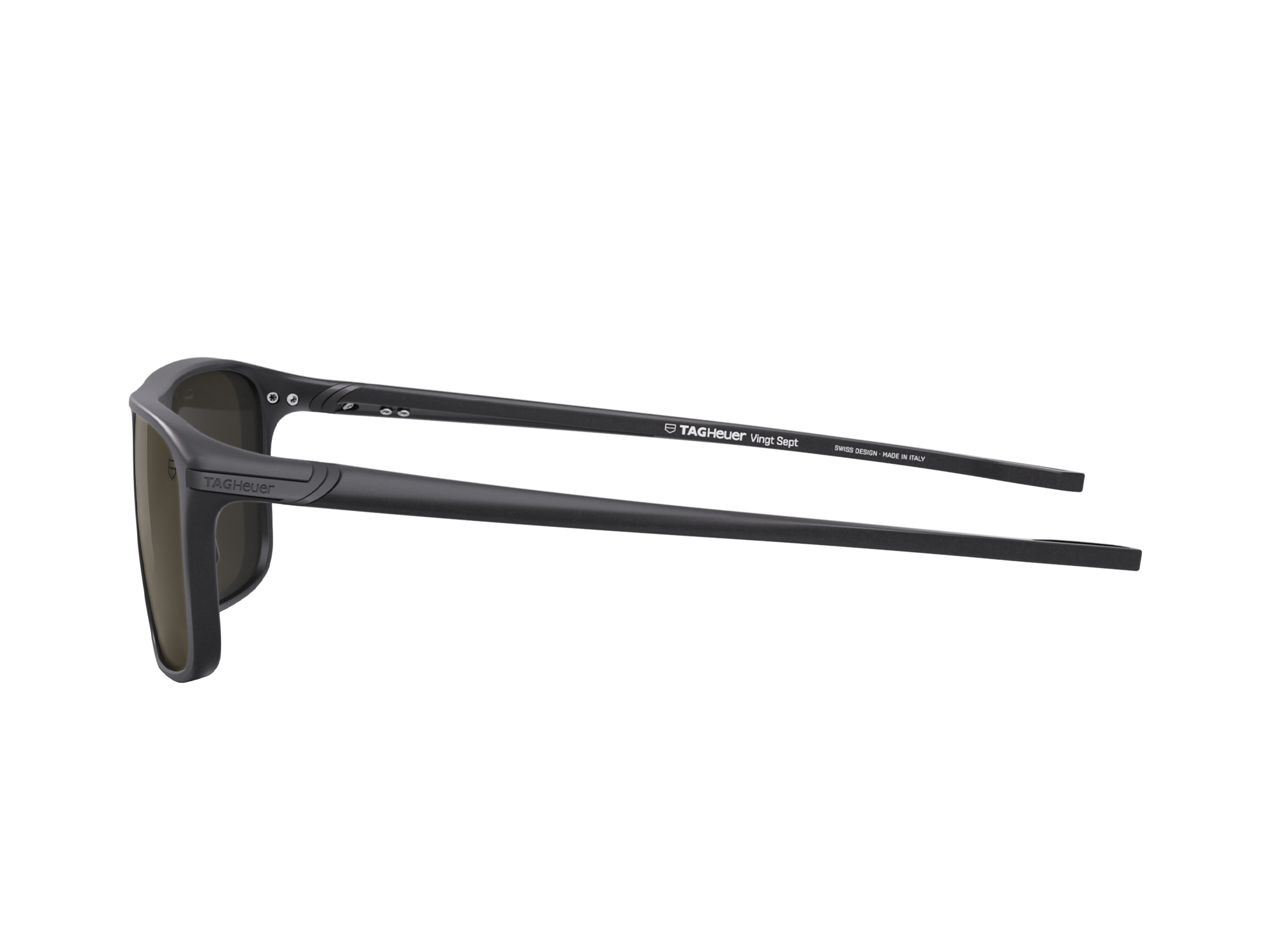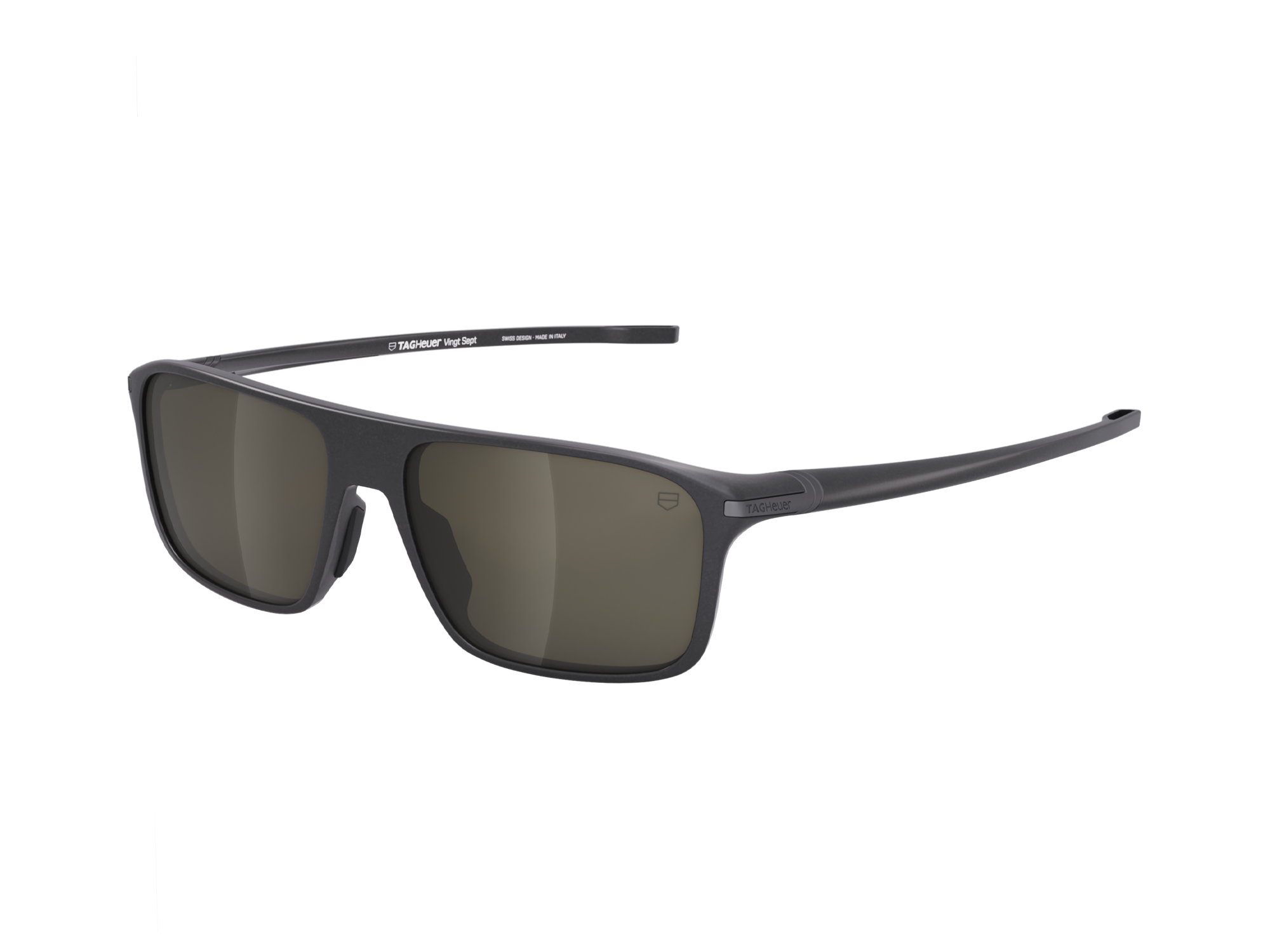 The black, semi-matte carbon fiber frame of these sunglasses combines resilient materials with a sleek look to face any challenge in style.