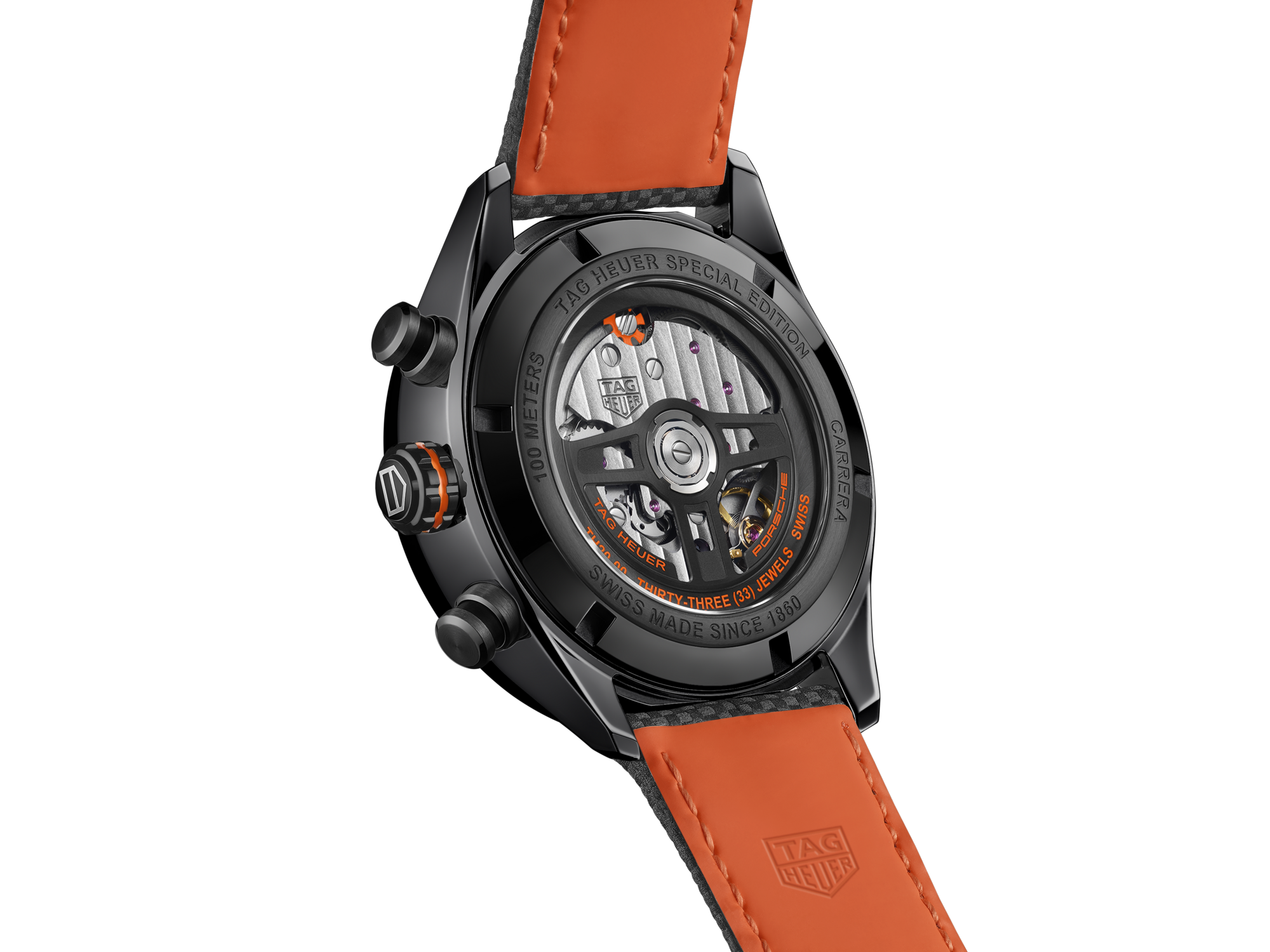 Speed is the name of the game in this TAG Heuer Carrera Porsche Special Edition. Paying tribute to the passion for racing shared by TAG Heuer and Porsche, it distills a bright orange inspired by the color of the sparks of heat made by the car on the asphalt. Victory is on the horizon.