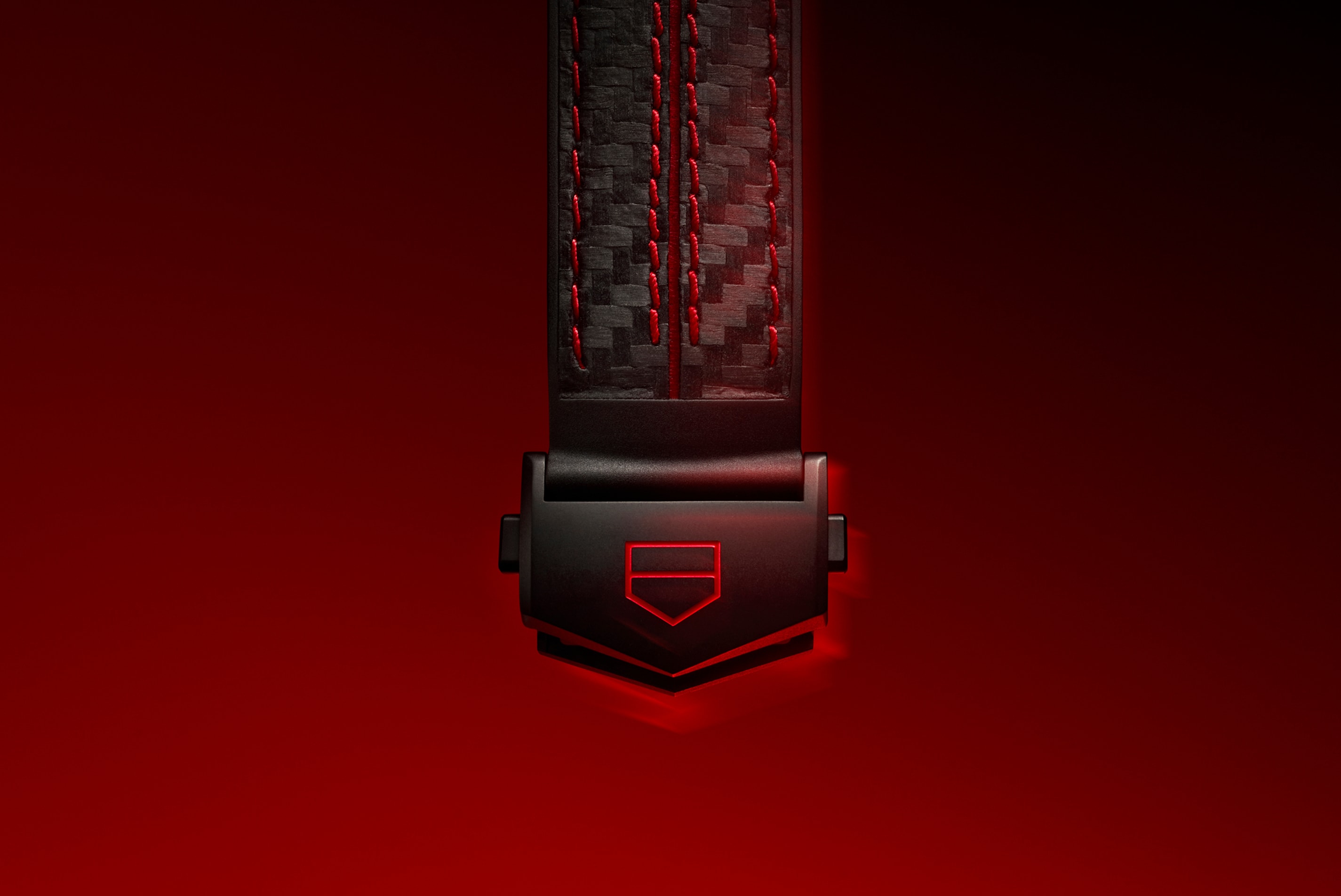 大胆なレッドラッカー仕上げのプッシュボタンとポリッシュ仕上げのブラックセラミック製ベゼルが、パドックのアドレナリンを映し出します。カーボンパターンのレザーを、スポーツの美学を感じさせるレッドのステッチで仕上げた、一体型バイマテリアル ストラップが合わせられています。F1® ロゴがエンボス加工で施された、交換用のベルクロストラップが付属します。