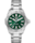 サンレイ加工サテン仕上げを施した、自然を感じさせるグリーンのダイヤルは、ホワイトのスーパールミノバ® を塗布したロジウムプレートのインデックスと針を備え、最適な視認性を提供します。