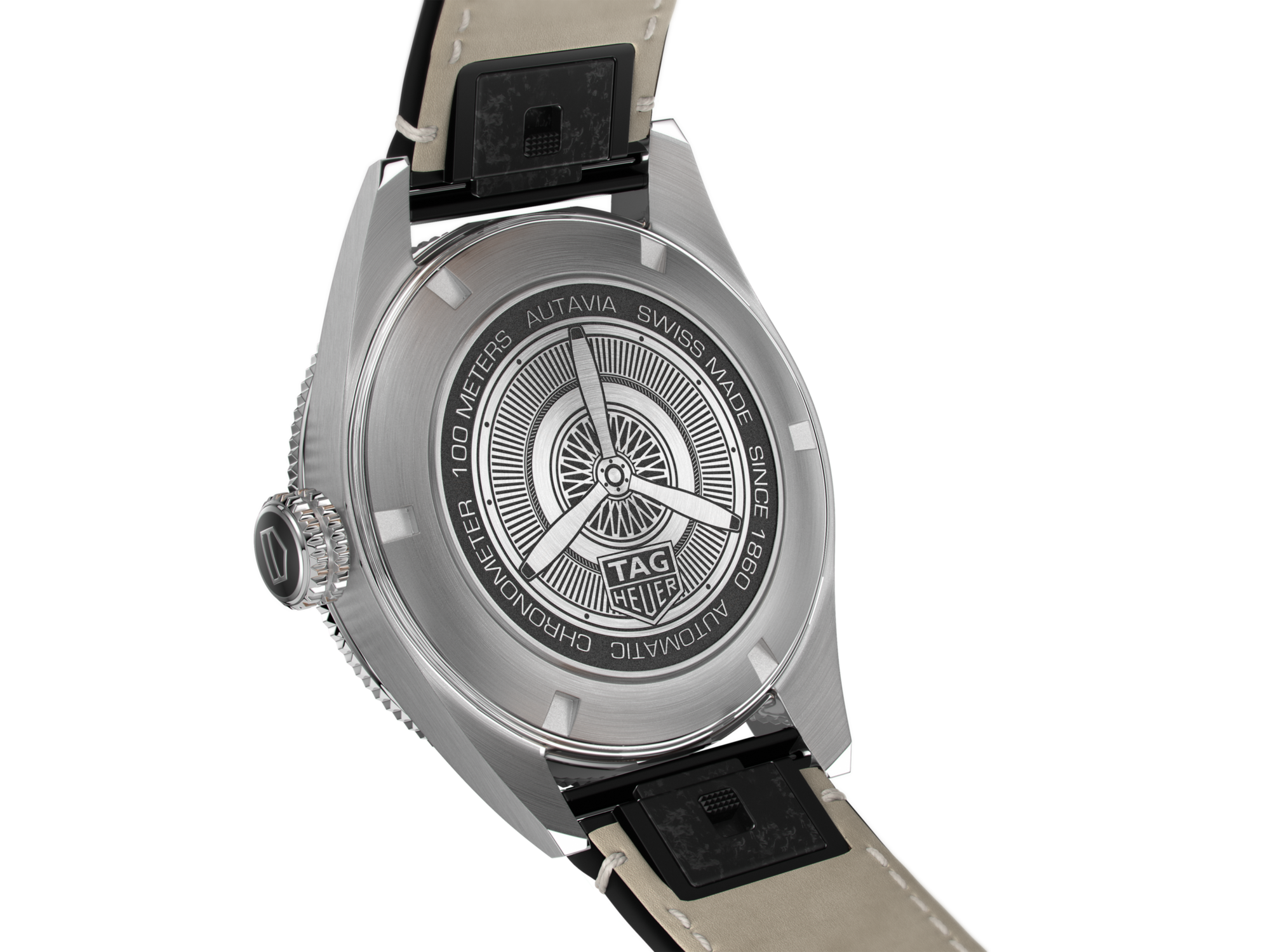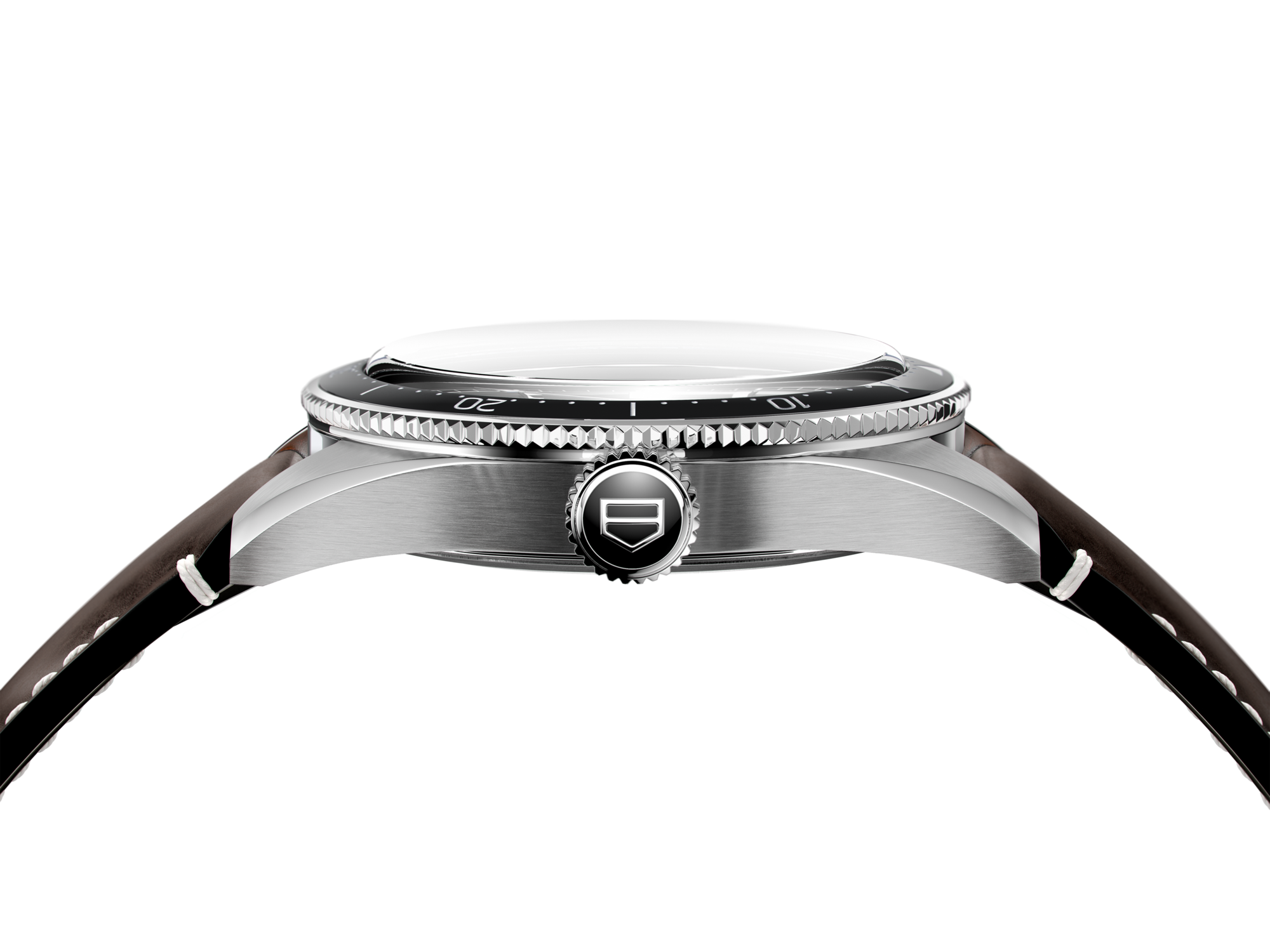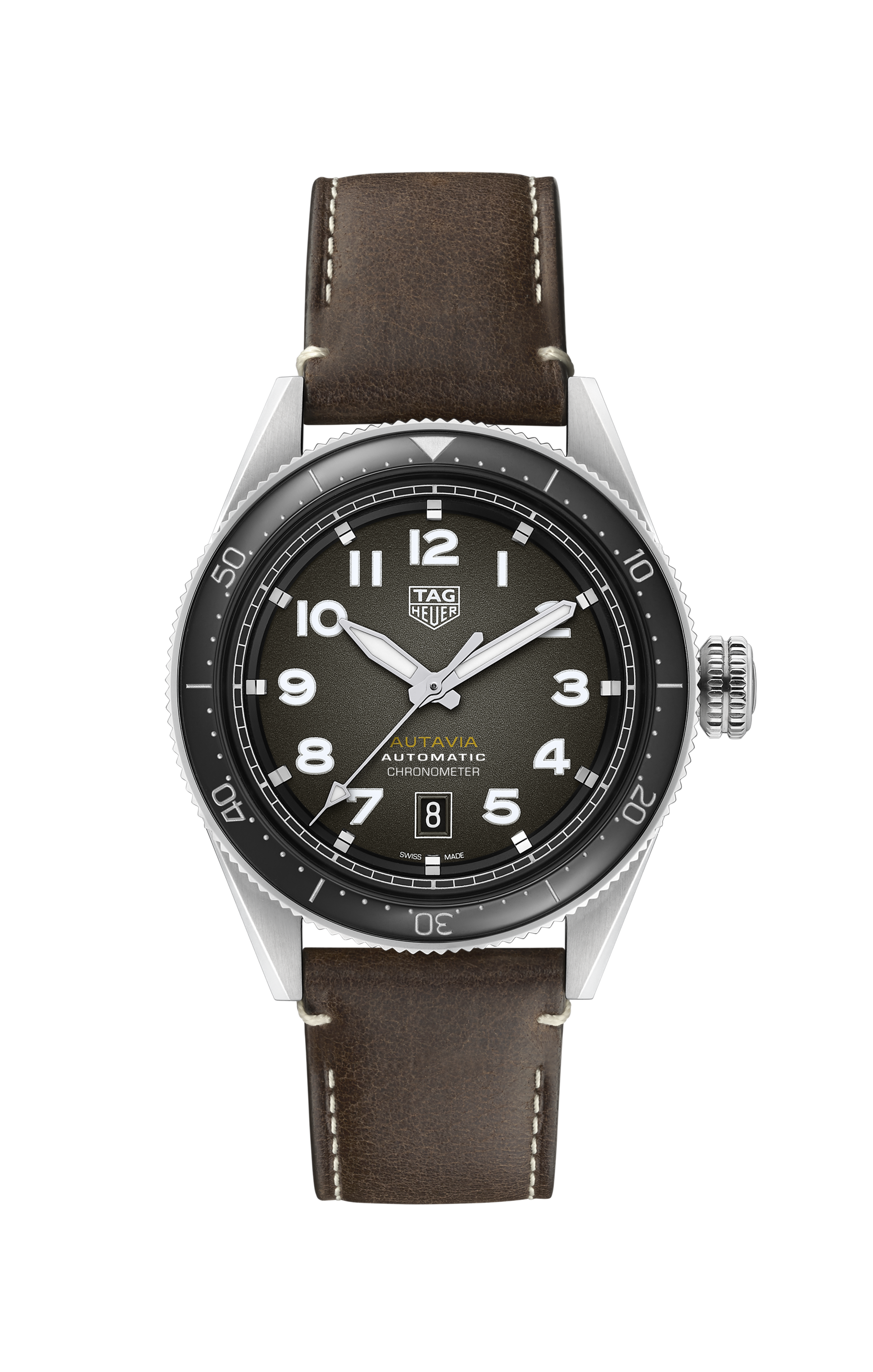 大きめのリューズ、アラビア数字、剣型針は、1933年から1957年にかけて作られたホイヤーのパイロットウォッチおよびタイマーからインスピレーションを得ています。 ダイアルはスモークブラウンで、セラミック製の60分ベゼルは両方向に回転します。 ステンレススティール製のラウンドケースと面取りを施したラグは、1960年代からのオータヴィアのルーツを反映しています。