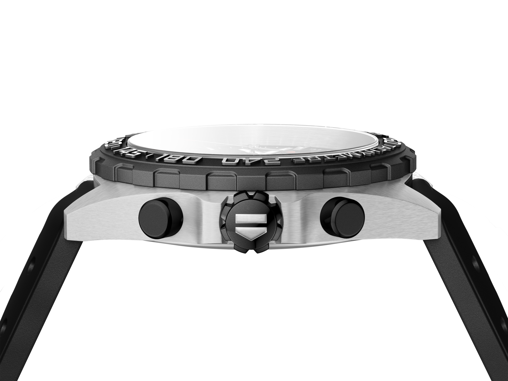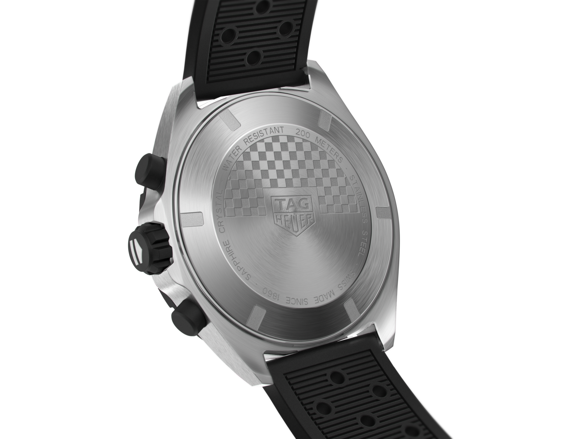 オールブラックのダイヤルと200m防水性を備えた、高精度のクォーツ・ムーブメントを搭載したクロノグラフ。モーターレーシングにインスパイアされた堅牢なモデルは、スピード、持続性、大胆さを持ち合わせています。