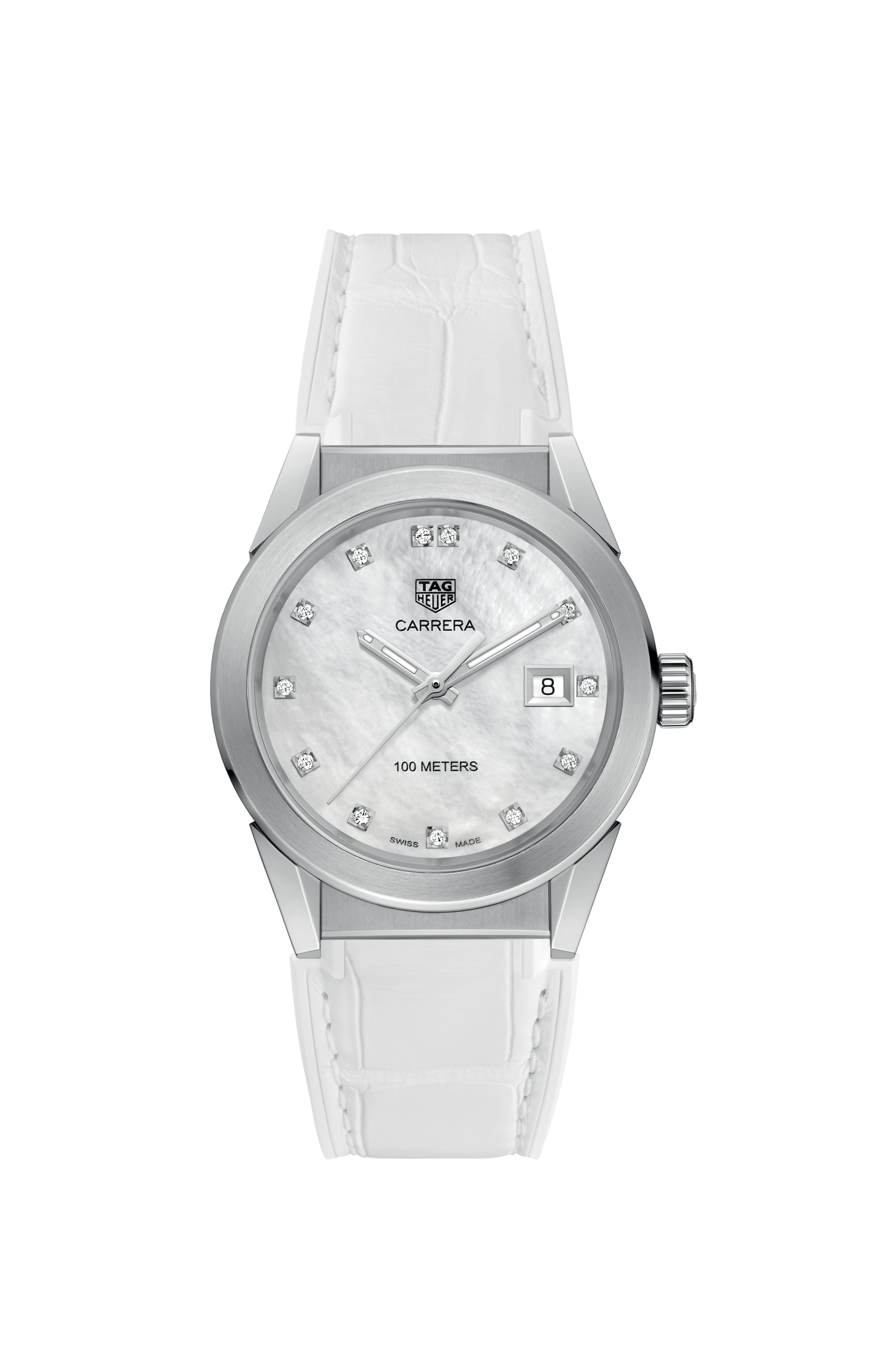 スイス製のこのエレガントなタグ・ホイヤー カレラは、デザイン性を備えた36㎜ウォッチです。 このモデルはスティール製ケースを採用し、クォーツムーブメントを搭載しています。