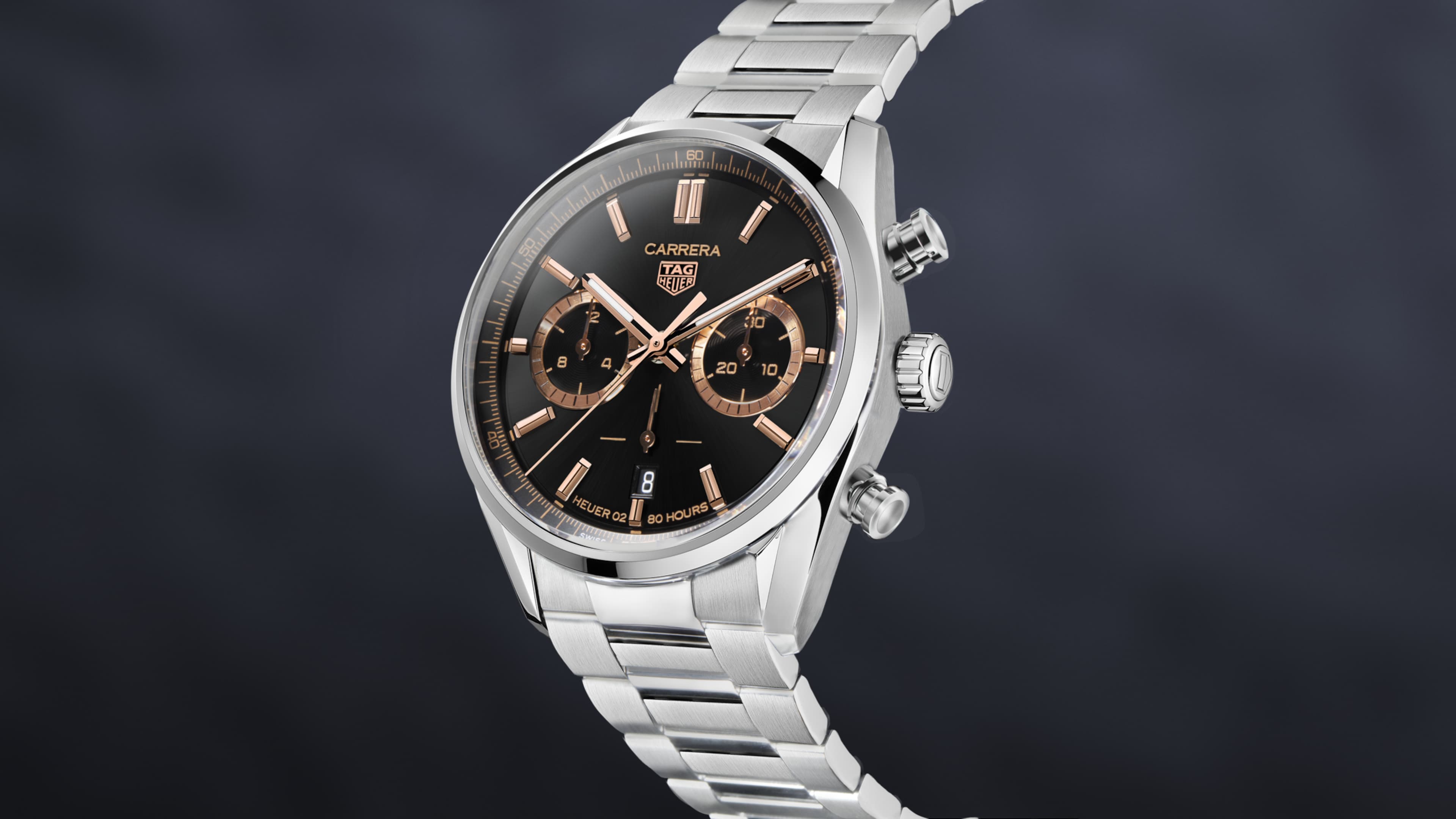 卓越したクロノグラフの計時性能を特徴とする、約80時間のパワーリザーブを誇る自社製ムーブメントホイヤー02搭載モデル。専用のスペシャルボックスでお届けします。