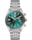 サーキュラーサテン仕上げが施されたティールグリーンのダイヤルには、3時位置にクロノグラフ分表示が備えられているほか、9時位置には角度を付けた日付表示を備え、クリーンなスタイルと優れた視認性を叶えるデザインされています。