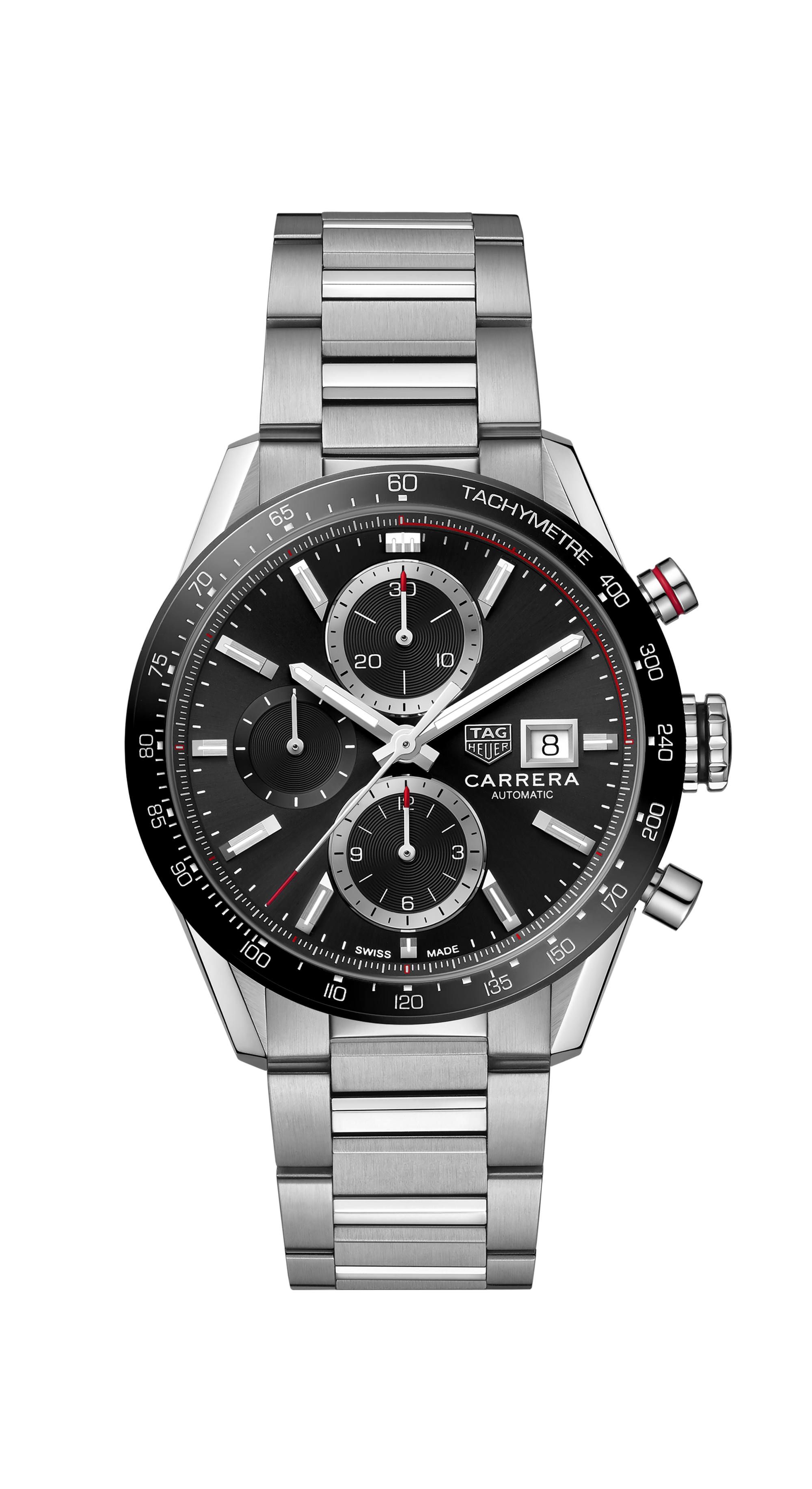 태그호이어 까레라 크로노그래프는 언제 어디서든 세련되게 착용할 수 있는 타임피스입니다. 41mm 스틸 케이스는 100m 방수 기능을 제공합니다. 인체공학적 H형 스틸 브레이슬릿은 이중 안전 푸쉬버튼을 장착한 폴딩 스틸 버클로 완성되었습니다.
