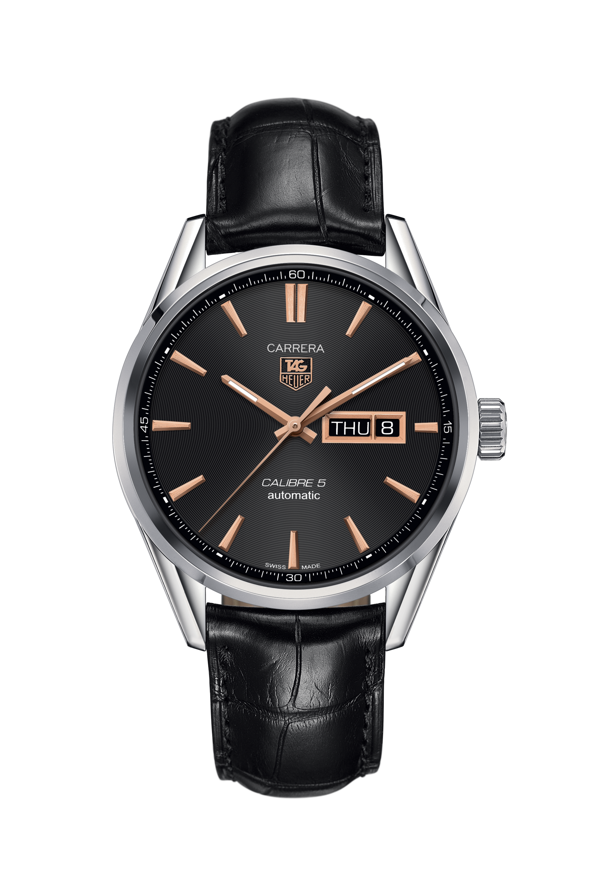 블랙 엘리게이터 스트랩과 조화를 이루는 블랙 다이얼 위로, 데이-데이트 창을 포함한 로즈 골드 디테일이 가미된 타임피스 입니다. 어반 라이프 스타일과 활동적인 남성을 위해 디자인된 타임피스입니다.
