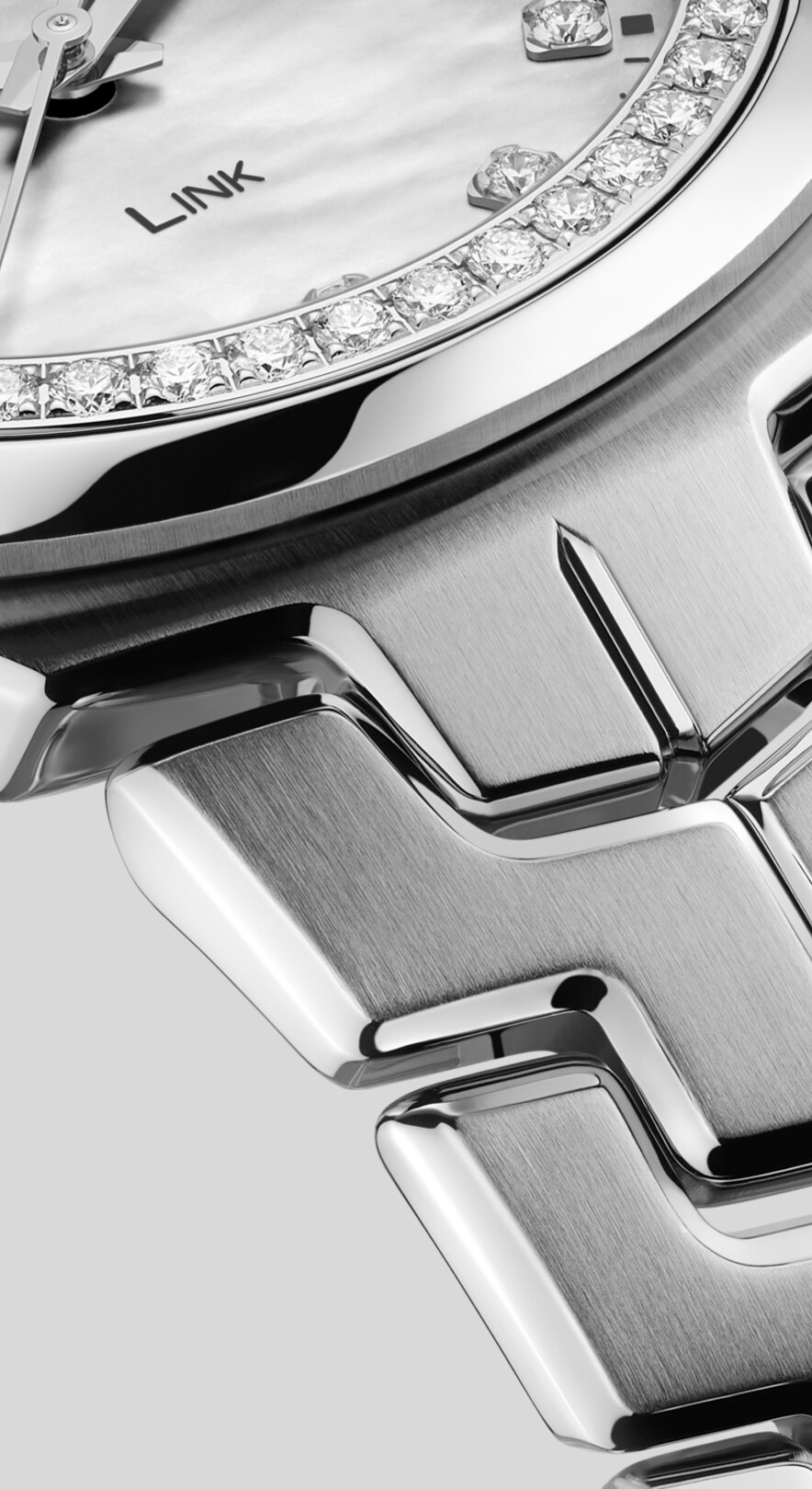 Quartz, 32 mm, Steel WBC1316.BA0600A scintillating diamond edition (0.792 CT) of the Link Lady Quartz with a very feminine dial in luminous white mother of pearl. Feminine glamour, quartz-powered reliability and steel strength: the ideal watch for active women seeking style.