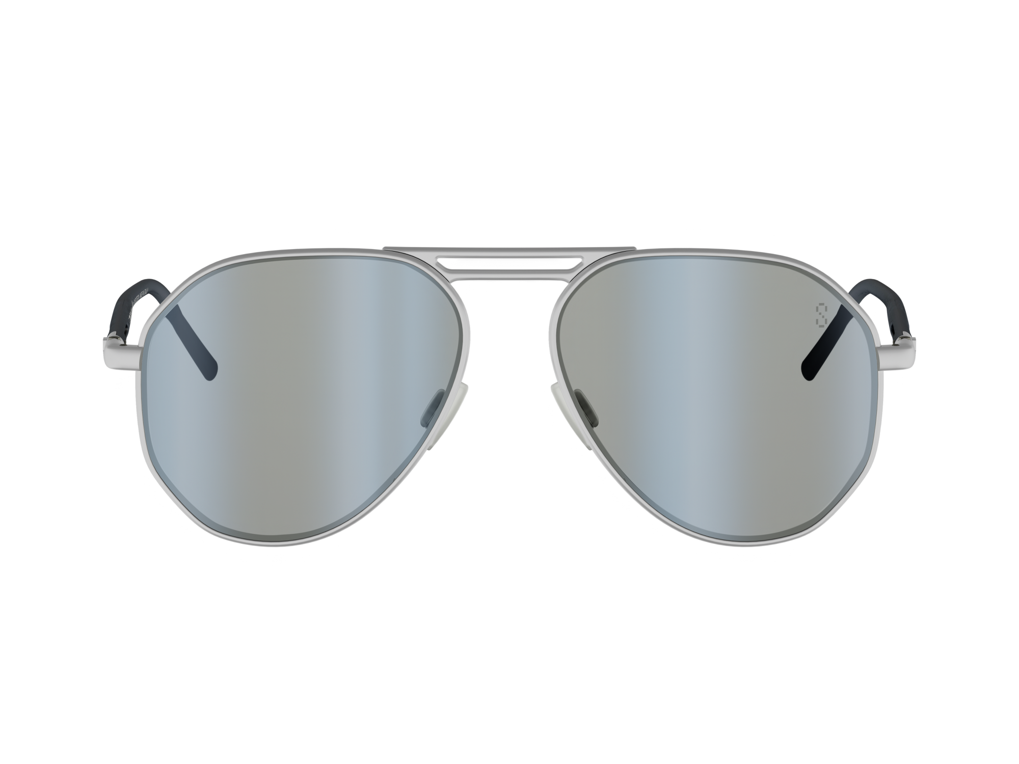 The rimmed structure is crafted from galvanised stainless steel with a matte palladium finish, giving the frame a refined, technical appearance. A high double bridge reinforces its graphic identity, while dark blue rubber temples with a visible metal core wire provide flexibility and introduce a minimalist colour accent. Adjustable rubberised bio-nylon nose pads ensure comfort, finished with a 3D lacquered TAG Heuer logo for subtle, refined branding.