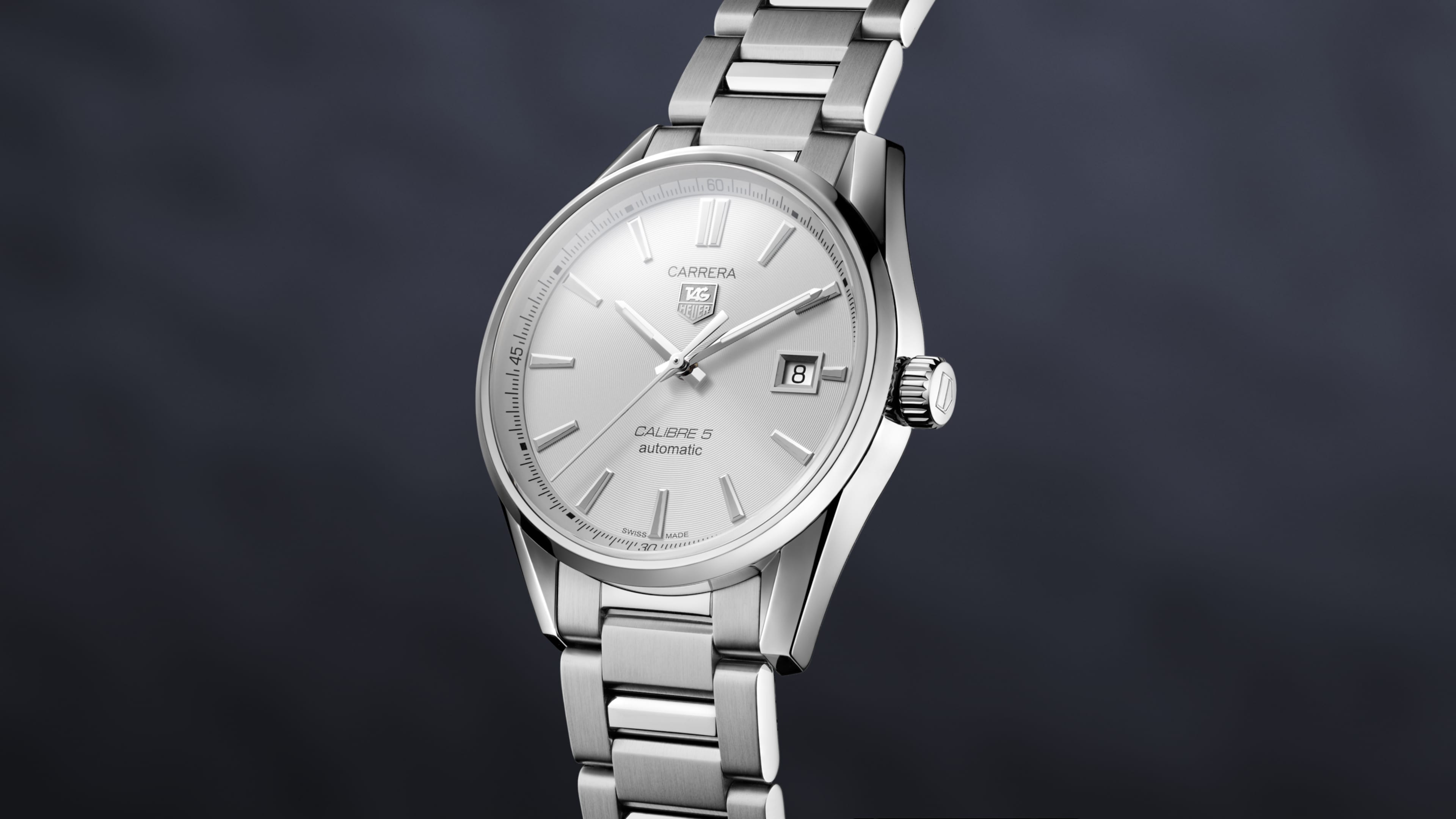 Automatic, 39 mm, Steel WAR211B.BA0782A very classic TAG Heuer Carrera with a 39mm stainless-steel case and a silver dial. The bracelet is fine-brushed and polished steel. Its motor-racing heritage comes through in its sparse, very legible dial design.
