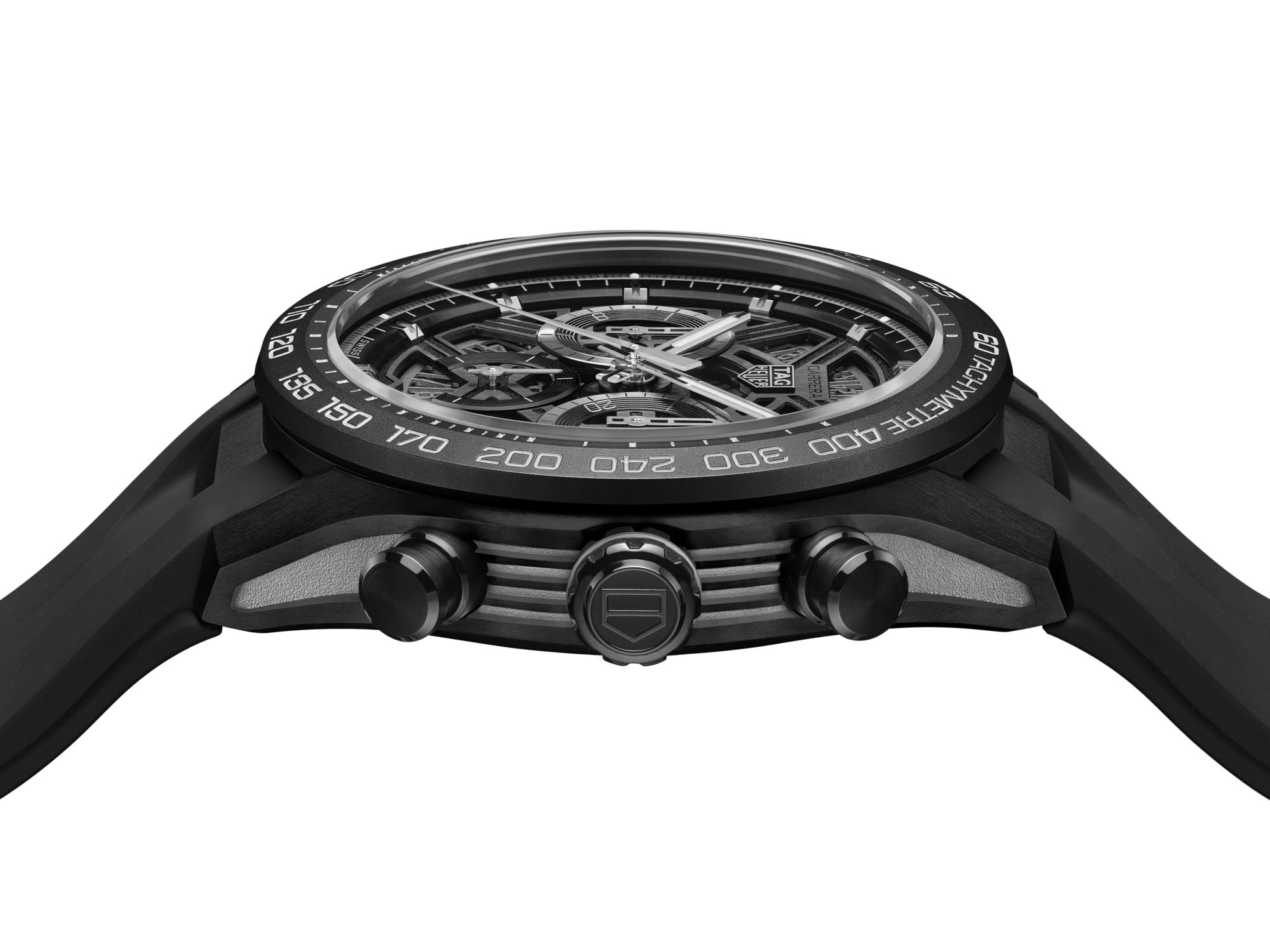 Nestled at the heart of this timepiece is the ultra-reliable and accurate TH20-00 in-house chronograph movement visible through the sapphire titanium caseback coated with black DLC — every racer's ideal companion.