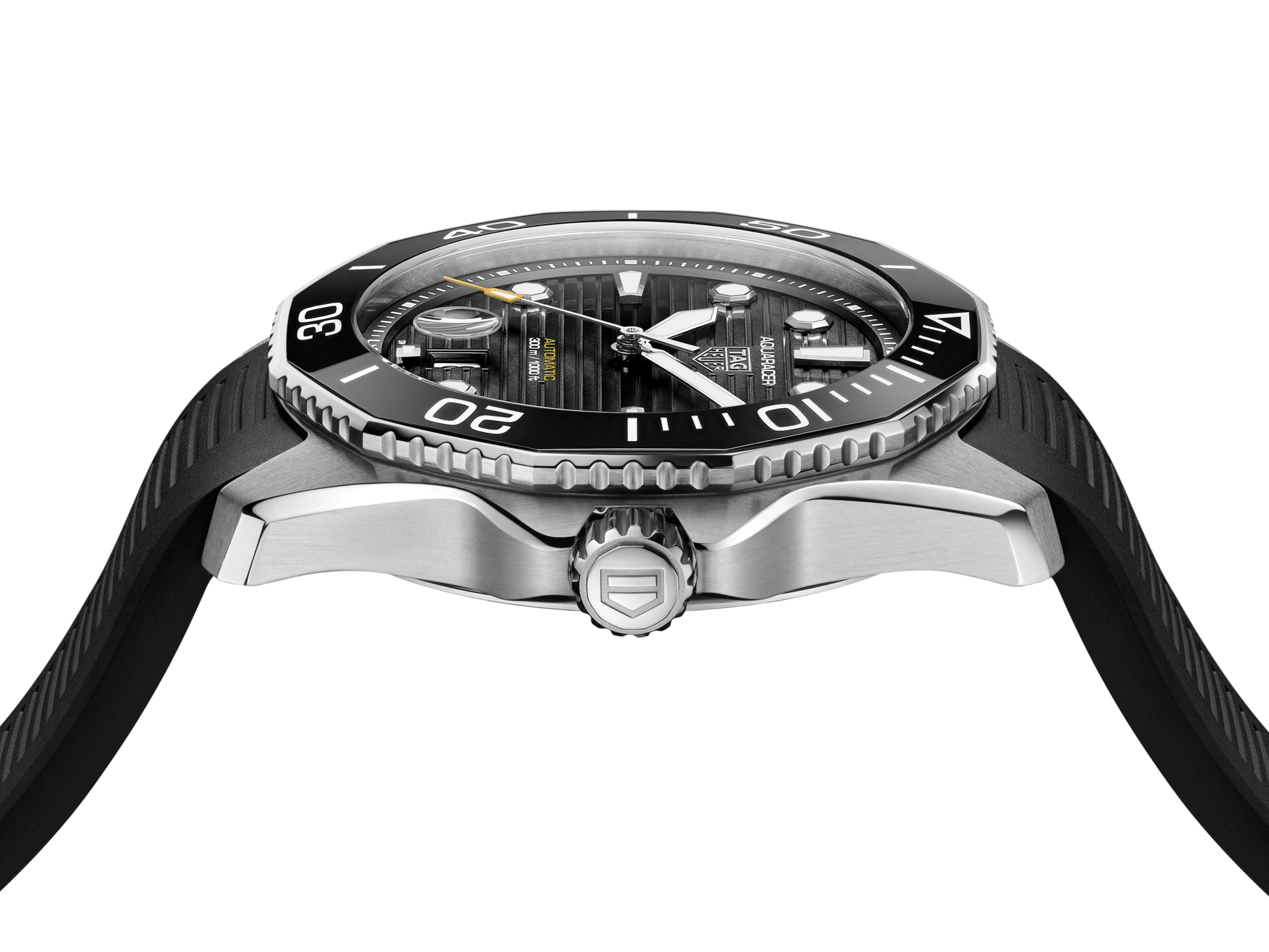 Powered by the automatic Calibre 5, this updated Aquaracer is geared for those who dare to surpass themselves. A diver’s robust and reliable companion, the watch draws inspiration in its details from TAG Heuer's first dive watch - the Ref. 844.