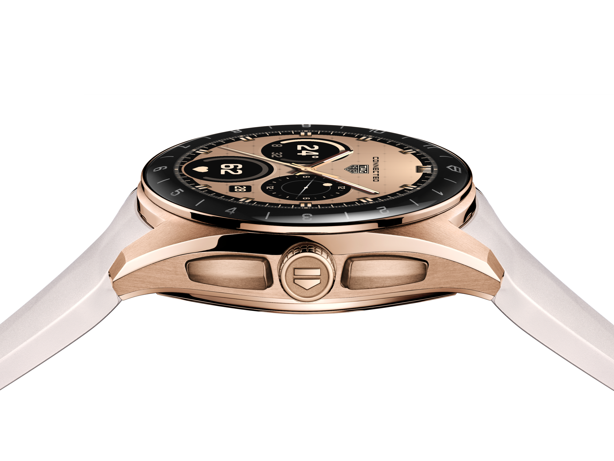 Elegance meets innovation in the TAG Heuer Connected Calibre E5. This 40mm model, features a refined steel case coated with rose gold colored PVD and the Maison's first in-house connected experience, complete with advanced fitness tracking. Experience functional design and timeless style, perfectly balanced.