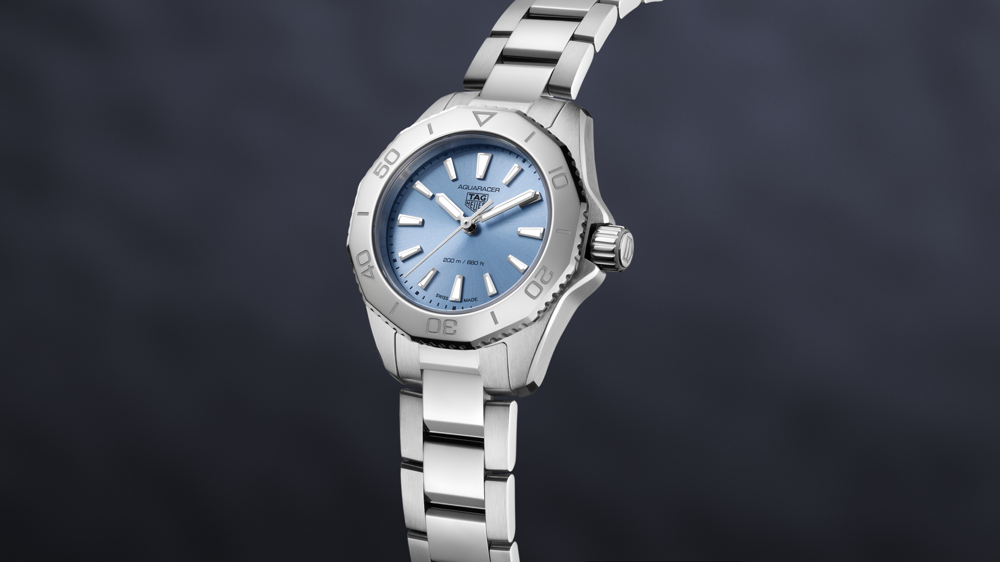 With a light blue sunray brushed dial that needs to be seen to be truly appreciated, this TAG Heuer Aquaracer is brimming with boldness.