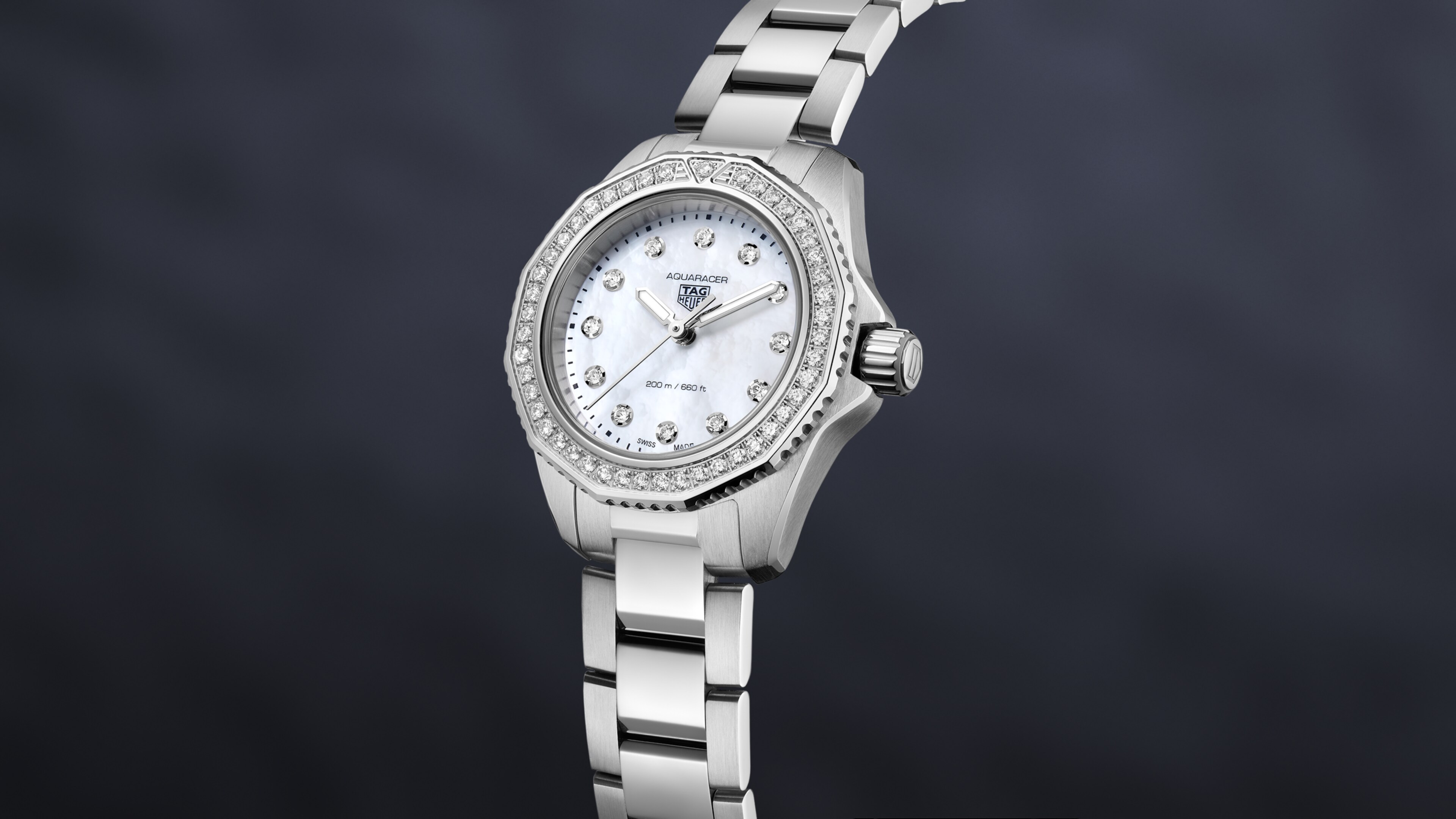 Quartz, 30 mm, Steel WBP1417.BA0622Decked out with a VS diamond-set bezel and dial, this TAG Heuer Aquaracer combines absolute elegance with extreme robustness. With a 30mm steel case and reliable quartz movement, this versatile tool watch is the perfect everyday companion.