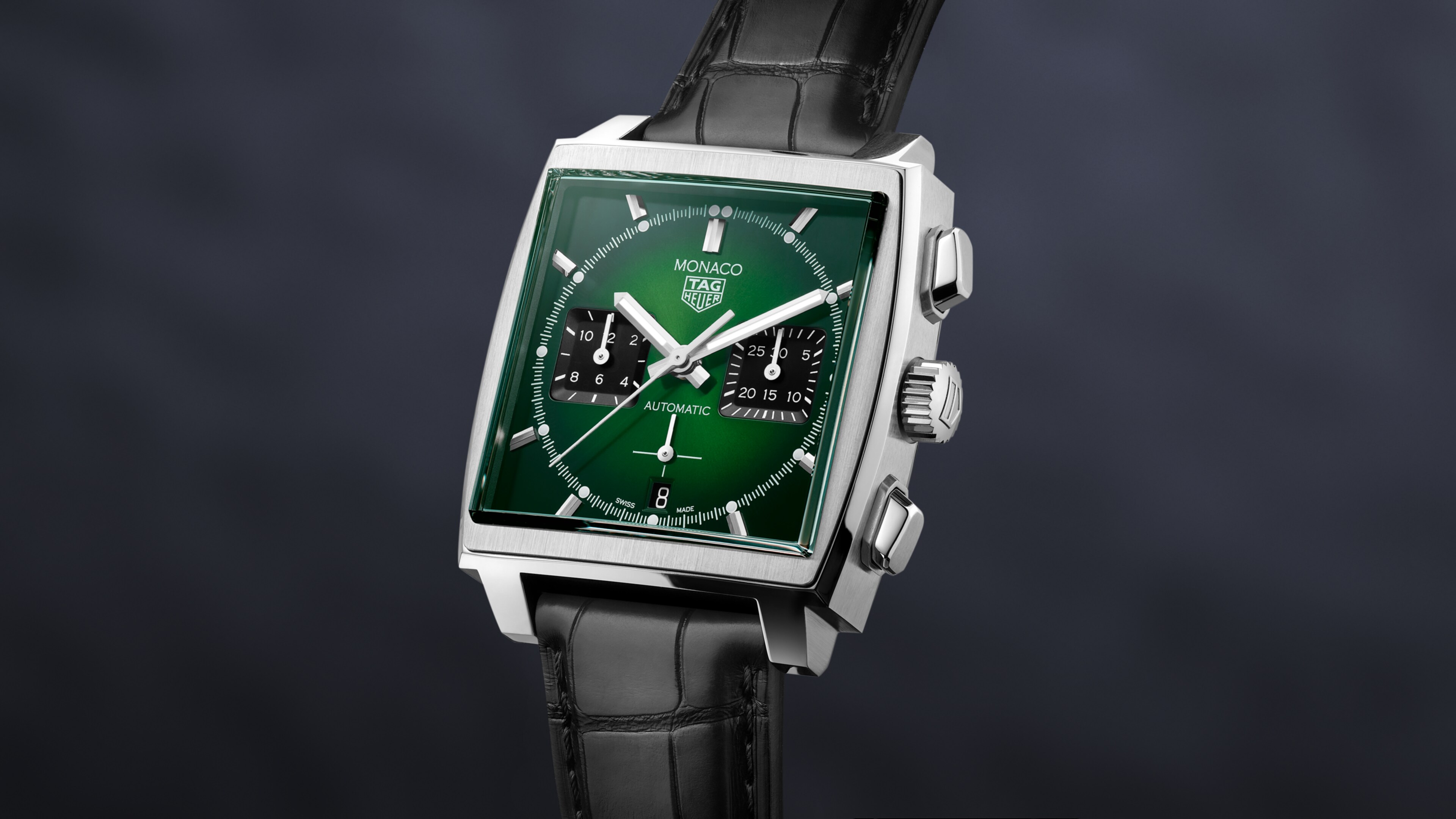 Automatic, 39 mm, Steel CBL2116.FC6497The TAG Heuer Monaco Green Dial celebrates the Grand Prix de Monaco Historique of which TAG Heuer is the Official Sponsor and Timekeeper. This never-seen-before dial color, a deep and subtle green, introduces a fresh take. Markings engraved on the oscillating mass and the column wheel of its in-house movement are also green. This special edition limited to 500 pieces will enchant watch aficionados.